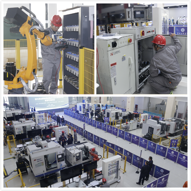 比赛内容突出高精尖导向,以智能制造技术推广应用实际与发展需求为设计依据,分为钳工(切削加工智能制造单元安装与调试)和电工(切削加工智能制造单元生产与管控)两个赛项,每个赛项分为职工组、教师组和学生组,每个组有若干个代表队,均为3人团体赛。本次大赛不仅仅考察个人的技术能力,还要考察选手之间的协助配合能力。选手的考核成绩由理论考试和实际操作两部分组成,相关内容和标准均按照全国大赛技术文件执行,同时结合切削加工领域智能制造单元应用技术发展状况和企业生产实际命题,总成绩中理论考试占20%、实际操作占80%。