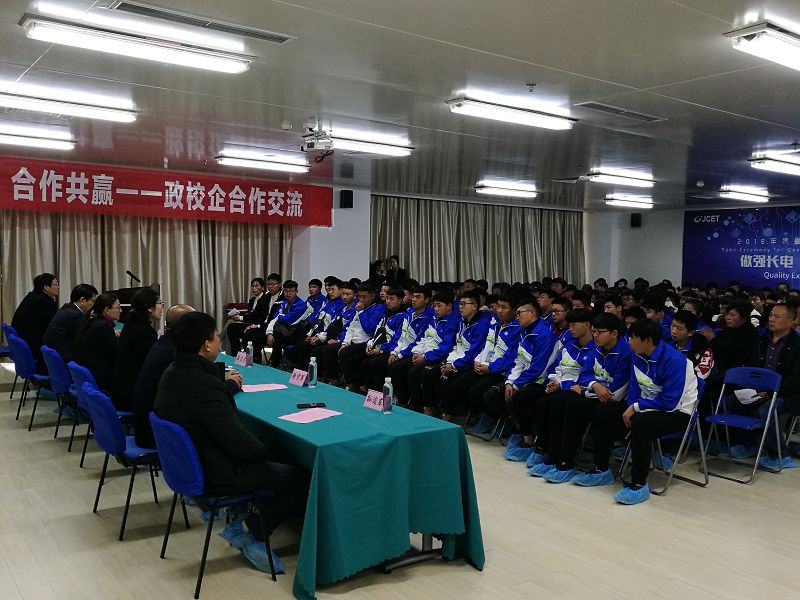 仪式开始前,与会人员共同参观了长电科技(宿迁)有限公司,深刻体验到长电科技强大的企业文化、创新求变的动力和先进的生产工艺。长电科技(宿迁)有限公司总经理陆惠芬女士介绍了公司的发展情况及“订单班”人才培养途径与措施。胡柯代表学院作了表态发言。