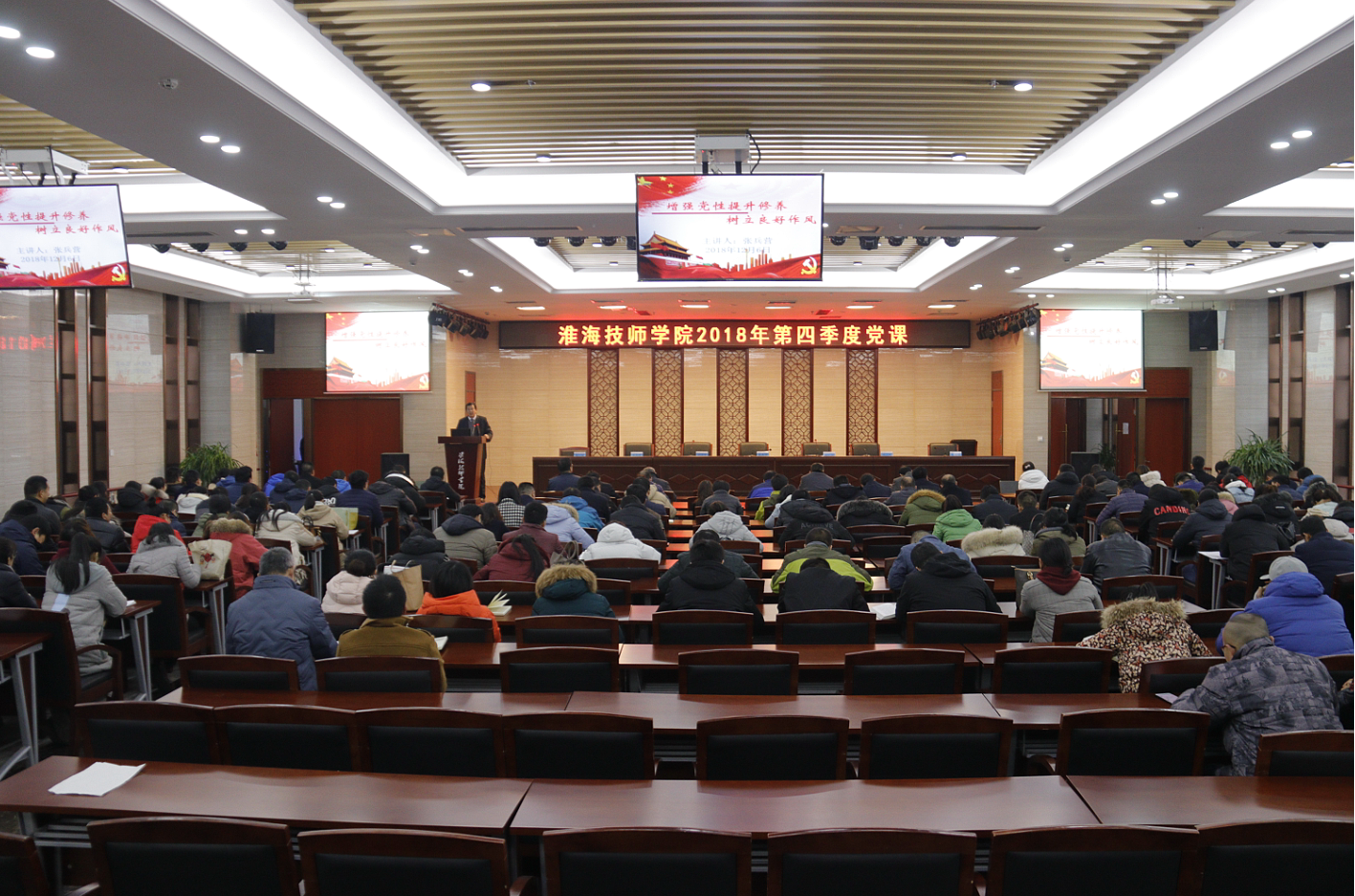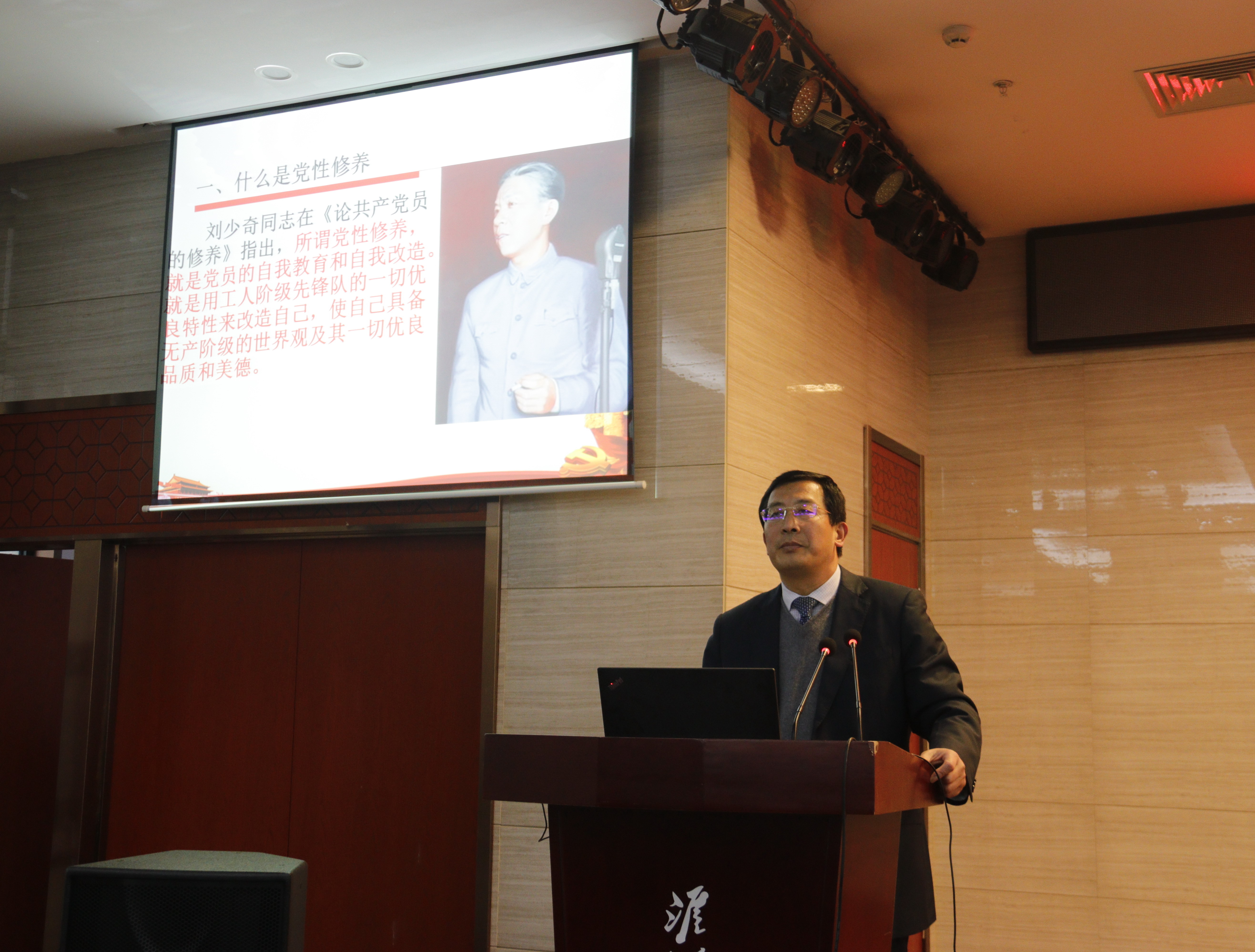 12月6日下午,院党委副书记、副院长张兵营以“增强党性提升修养,树立良好作风”为主题讲授专题党课。党课由院党委委员、副院长王治主持。院领导及全体教职工参加党课。