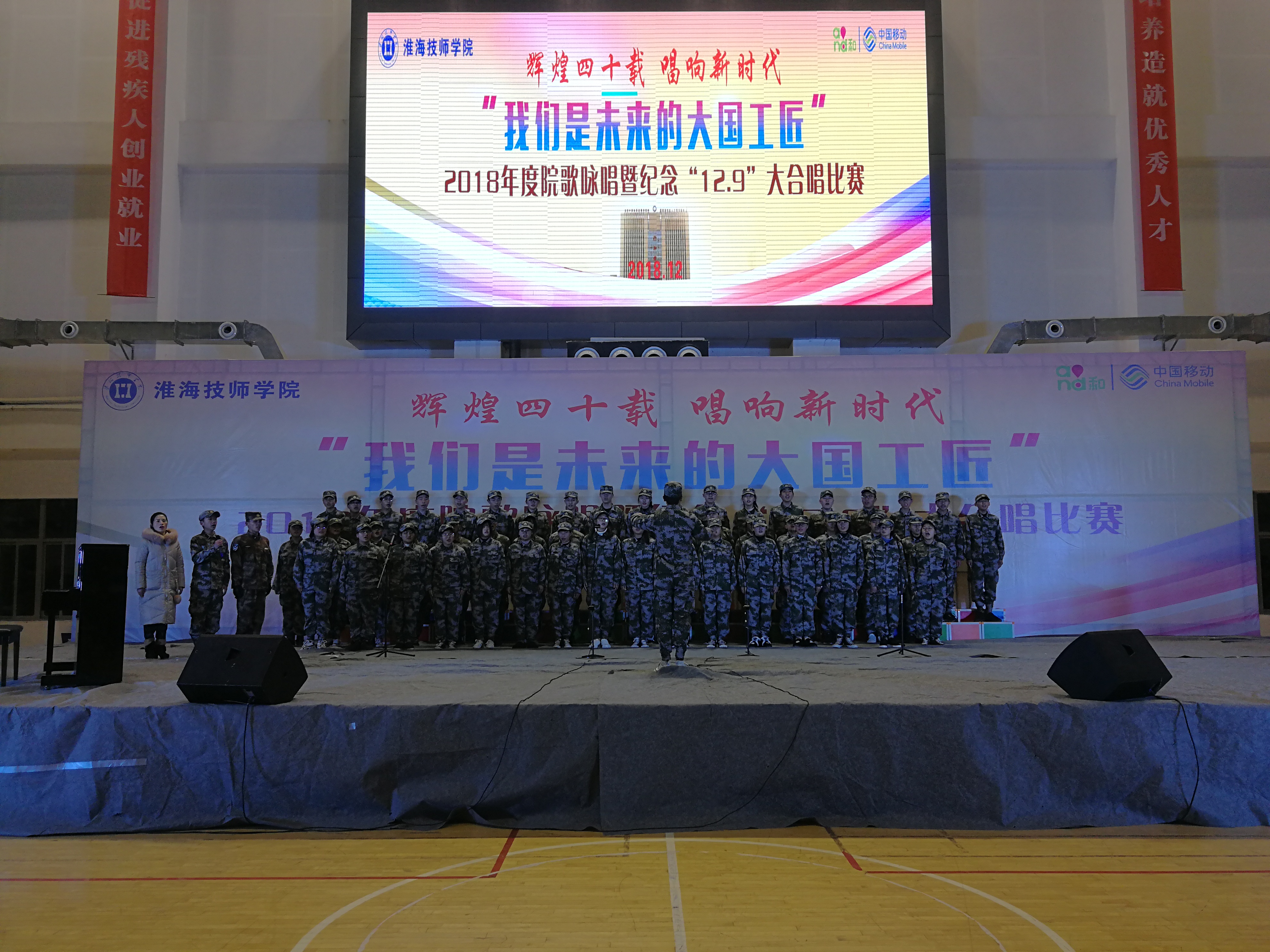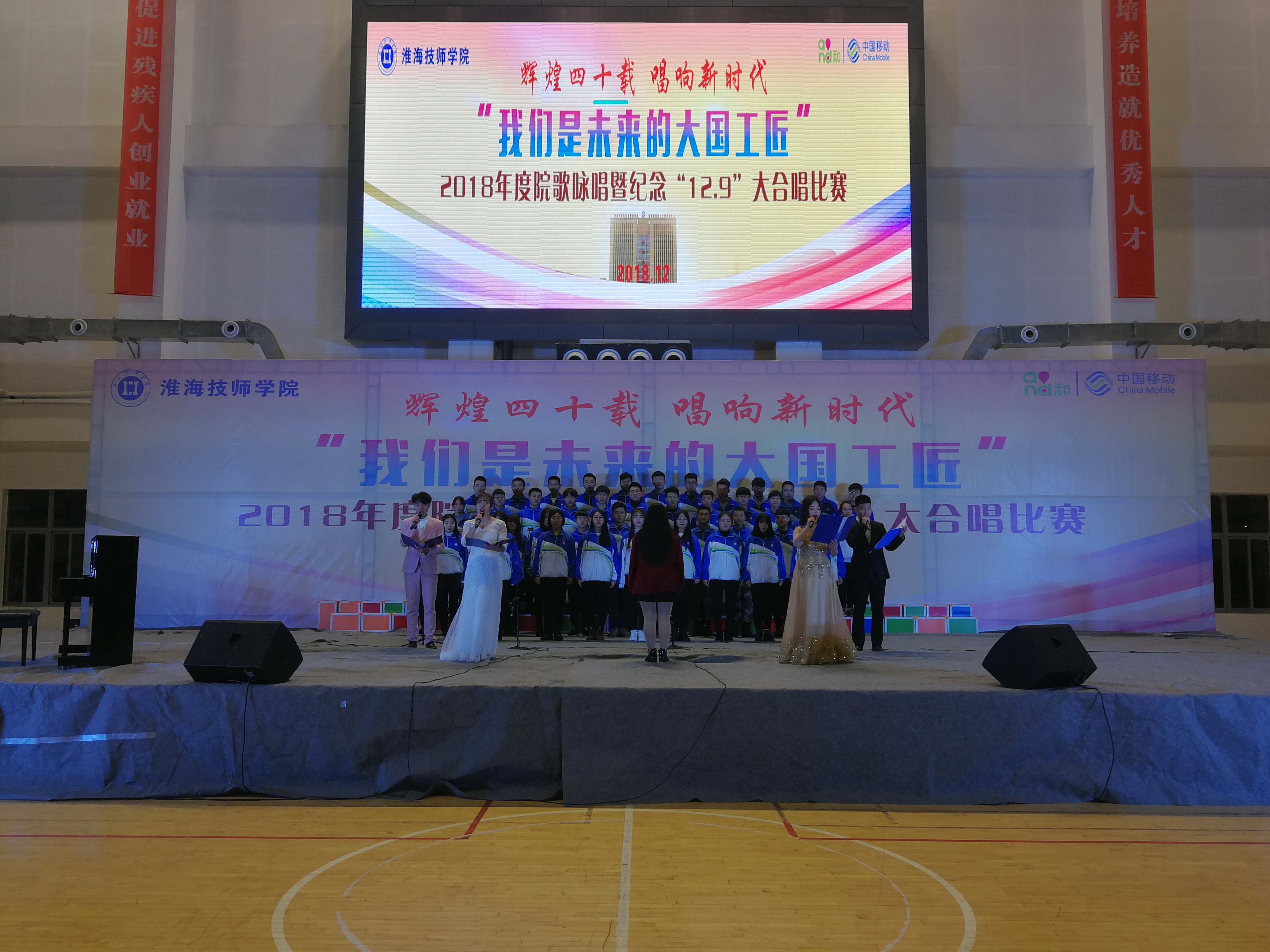 为纪念改革开放40周年、一二·九运动爆发83周年,并进一步丰富校园文化生活,集中展现我院青年学生爱国、爱校、热爱社会主义的价值追求和深厚情感,12月11日晚,我院在院体育馆隆重举行“我们是未来的大国工匠”院歌咏唱暨纪念一二·九大合唱比赛。来自各系部在校班级组成的10个参赛队参加了院决赛。院领导及全体师生一起观看了整场比赛。