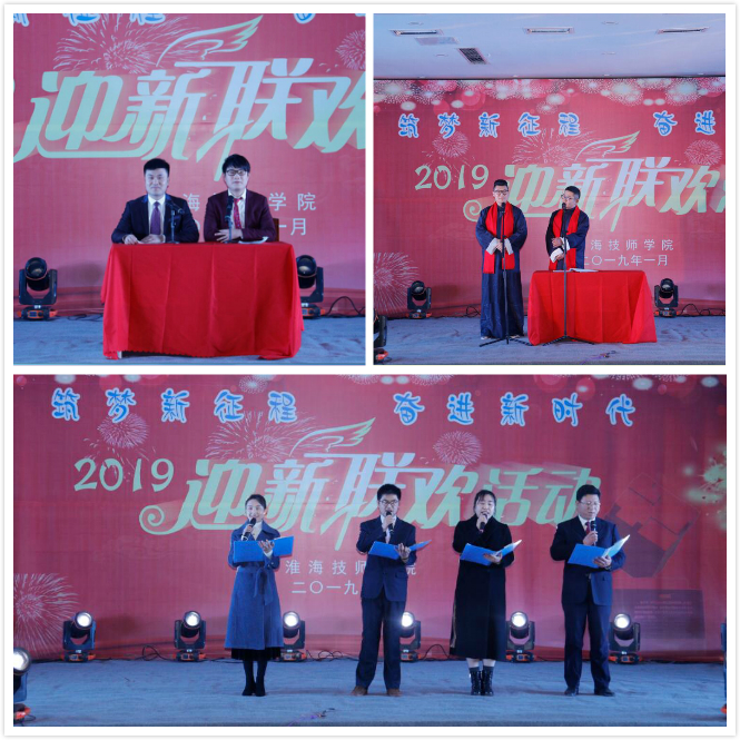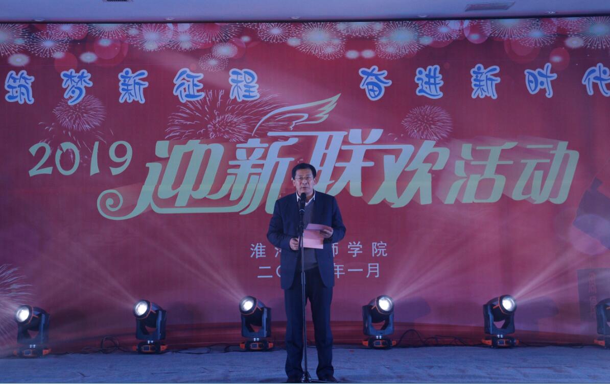 联欢会在学院“淮海艺术团”师生激情洋溢的开场舞蹈《拥抱新时代》中拉开序幕。学院党委副书记、副院长张兵营为晚会致辞,他指出过去的一年,是学院承前启后、继往开来的重要年份,是学院发展史上的一座重要里程碑,学院各项事业成绩斐然,成绩的取得离不开全院教职工的辛勤付出。接下来的2019年,将是我院继续改革创新、高质量发展的一年,希望大家继续发扬“艰苦创业、勤奋进取、勇于担当、追求卓越”的精神,共创学院更加美好的明天。