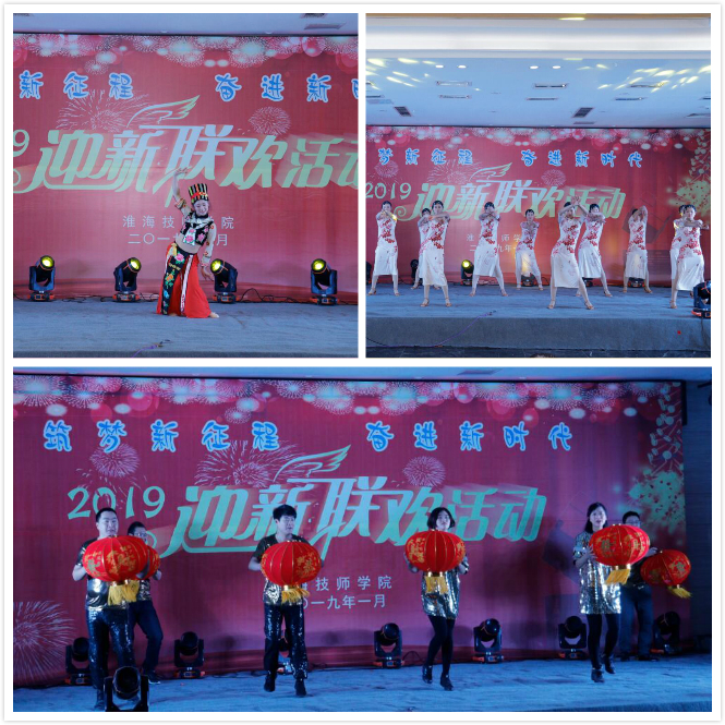 此次联欢会分为“筑梦新征程”、“凝聚淮海情”、“奋进新时代”三个篇章。相声《职教新人》、小品《淮海新闻联播》、合唱《我爱你中国》、配乐诗朗诵《走过2018》、歌伴舞《蓝色海洋》……大家用一个个自导自演的节目表达着对学院这个大家庭的由衷热爱,全场掌声雷动,不时将晚会气氛推向高潮。在联欢会期间,还进行了“集体套圈”、“乒乓接力”、“击鼓传花”等互动游戏环节,整个联欢活动现场欢声笑语不绝于耳,气氛热烈融洽,在喜庆和谐的氛围中增进了教师之间的友谊。