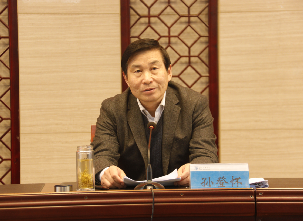 孙登怀在讲话中充分肯定了学院在过去一年里所取得的成绩,分析了当前技工教育面临的形势和机遇,对新年的工作提出了明确要求,并表明局党组对学院一如既往的关心和支持。围绕做好学院新一年的各项工作,孙登怀要求做好“四个强化四个突出”:一是强化认识,突出机遇。要抓住国家政策利好机遇,抓住各级领导重视机遇,抓住地方产业升级机遇,抓住技能提升需求机遇。二是强化定位,突出重点。要进一步深化省重点技师学院创建,进一步推动技能大赛成绩新突破,进一步提升服务发展能力,进一步加强高水平师资队伍建设。三是强化责任,突出履责。学院领导班子要凝心聚力、增强信心,攻坚克难、彰显担当,严守底线、遵守规矩,全体教师要始终牢记育人使命,始终坚持以德立身,始终不断提升素养。四是强化保障,突出提升。要积极对上争取,支持队伍建设,落实相关政策。