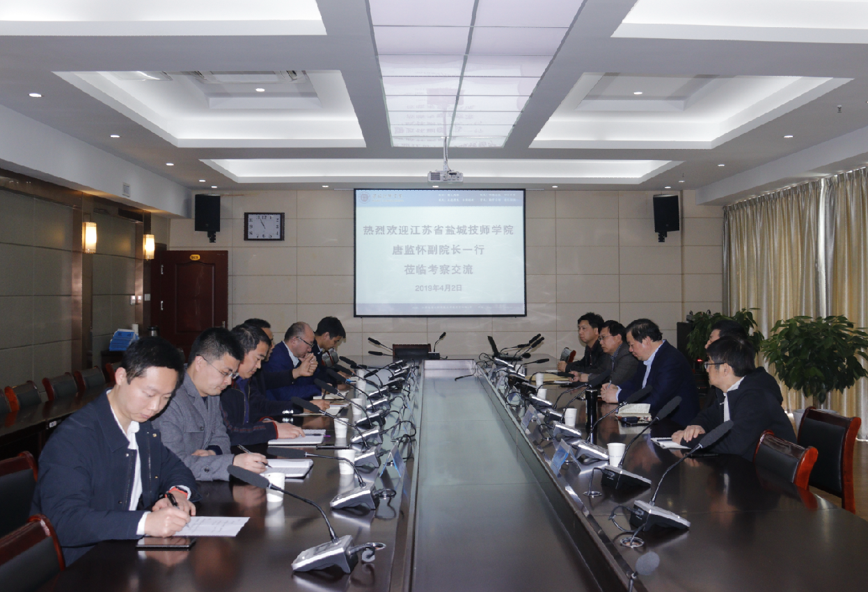 4月2日上午,江苏省盐城技师学院党委委员、办公室主任唐监怀一行到我院考察交流。学院院委委员、党政办公室主任朱宇亮及相关部门负责人参加座谈会。