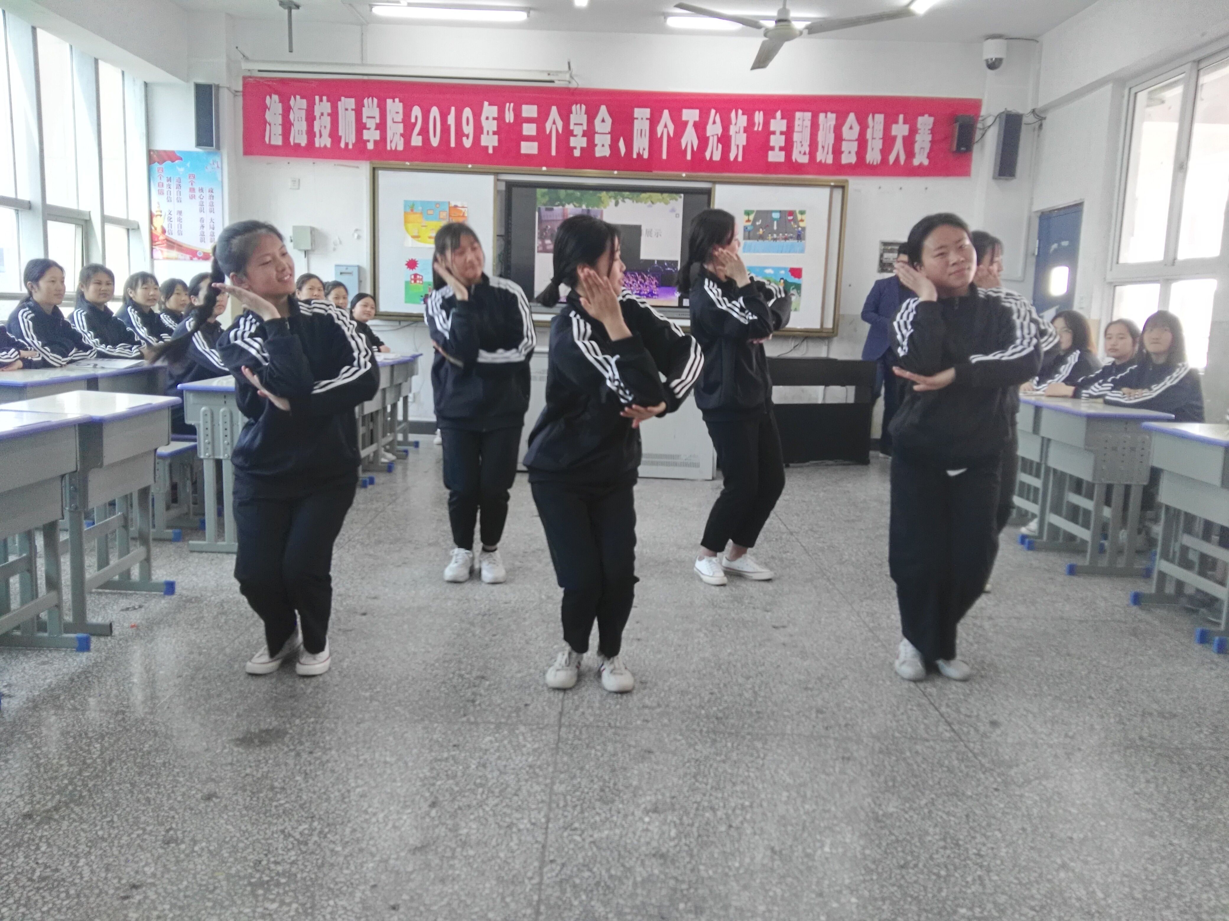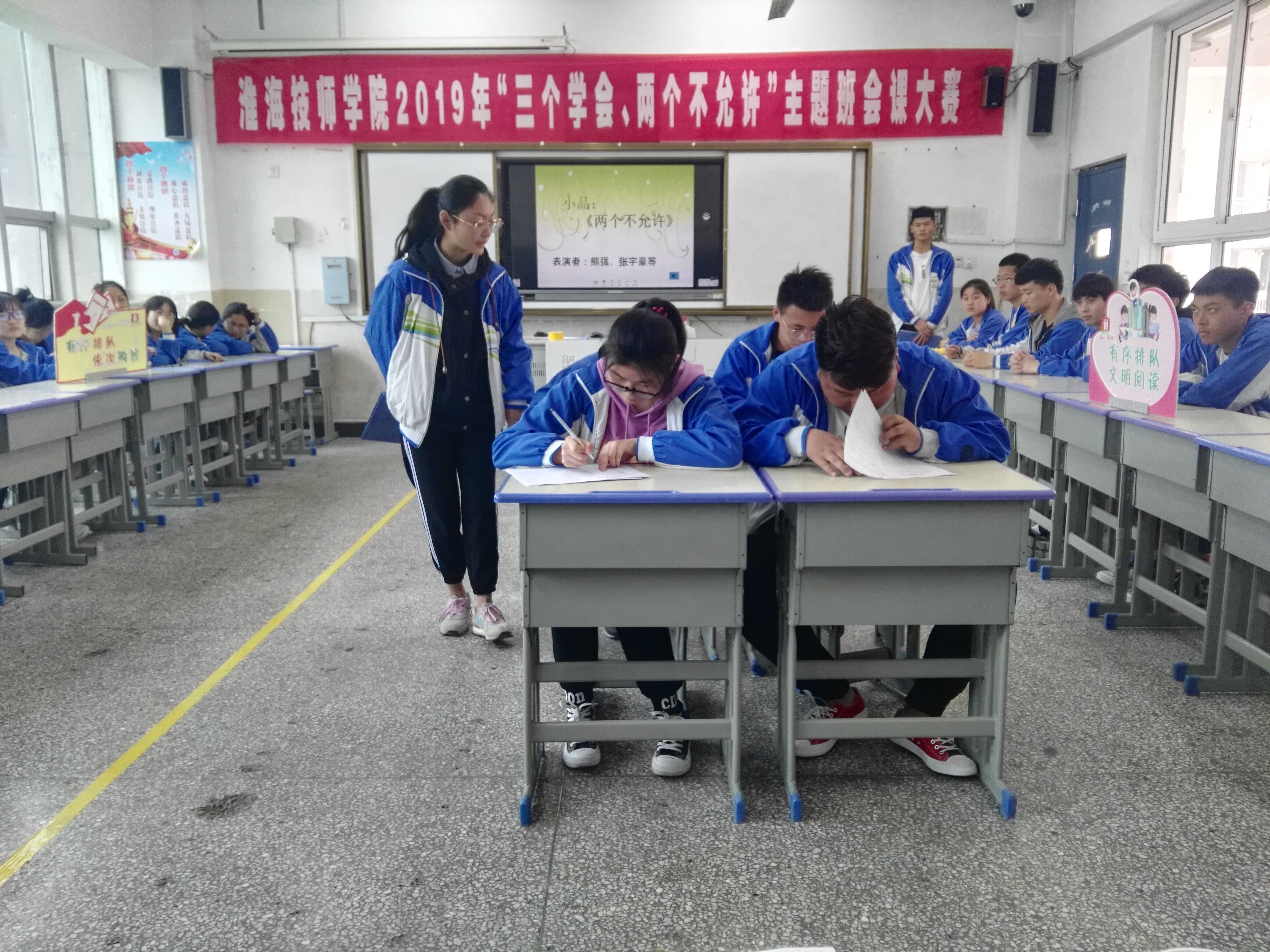 此次活动围绕“三个学会、两个不允许”主题,注重学生的全员参与。班会课上,很多立足于文明行为规范的活动环节令人耳目一新,有的用PPT展示、相声、小品表演、互动游戏和现场讲解等多种方式,对班会主题进行深入挖掘和精准阐述。有的班级采用“接地气”的校园微视频录制、文明行为调查、校园情景剧等形式增强了教育的感染力。在每节主题班会展示后,学院评委还组织了由其他班主任参与的点评活动。