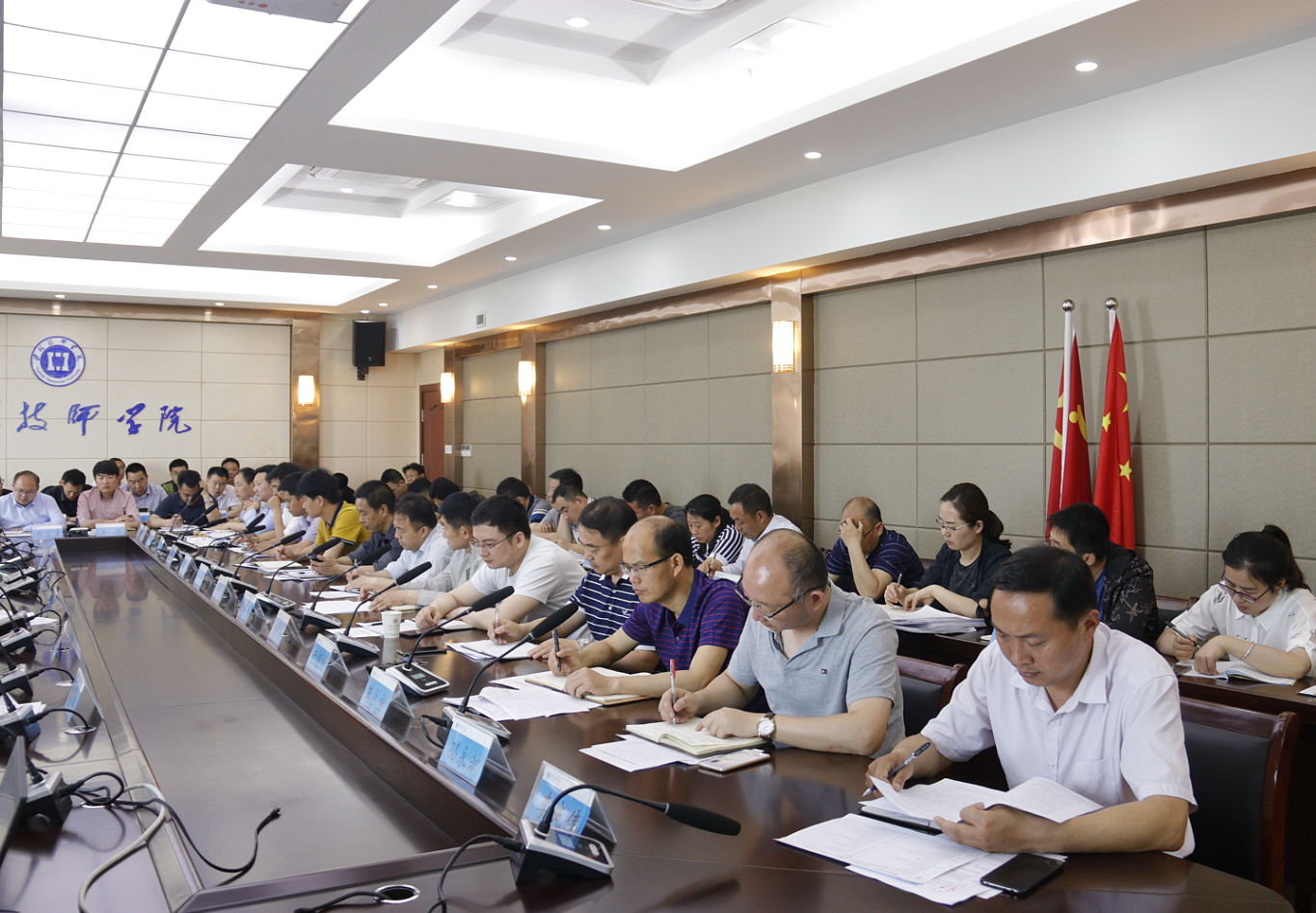 听取汇报后,张兵营就近学院近阶段重点工作作了简要总结,对工作成果给予高度肯定,并对会议通报以及工作过程中存在的一些问题和不足进行了强调,要求各相关部门要按照会议部署内容和工作要求,认真抓好落实和整改。随后,安排部署了下阶段十一项重点工作:一是组织好“技能节”活动,营造出“学技能、比技能、强技能”的良好氛围;二是强化教学管理,加强教学秩序督查和技能大赛集训管理;三是组织好市级教师职业能力大赛选拔和参赛工作;四是做好规范管理及突出问题专项治理自查自纠及整改工作;五是强化德育和安全管理,确保校园和谐稳定;六是进一步加强招生宣传组织,规范招生行为;七是加大社会培训力度,加快争取培训资金;八是加快推进消防整改等相关工程建设工作;九是加强湖滨校区管理,规范各项工作行为;十是推进党风廉政建设和作风建设工作要点以及风险点排查工作的落实和监督;十一是继续推进省重点技师学院创建工作,做好国家级高技能人才培训基地资料完善。