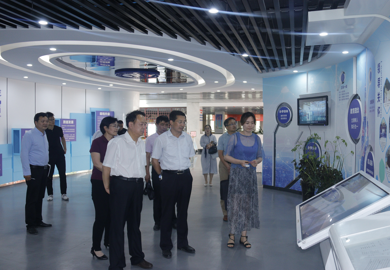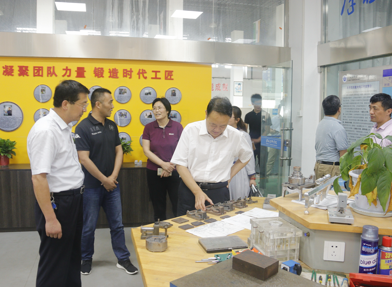 陈建华一行先后参观了学院机器人实训中心、高铁乘务实训中心、机电实训中心、数控加工实训中心、机械加工实训中心、国家技能大师工作室、财会实训中心、电子商务“教学工厂”、汽车喷漆国赛集训基地、校史馆等地,对我院先进的实训设备、完善的管理制度、干净的实习场所和校园环境给予了高度评价。