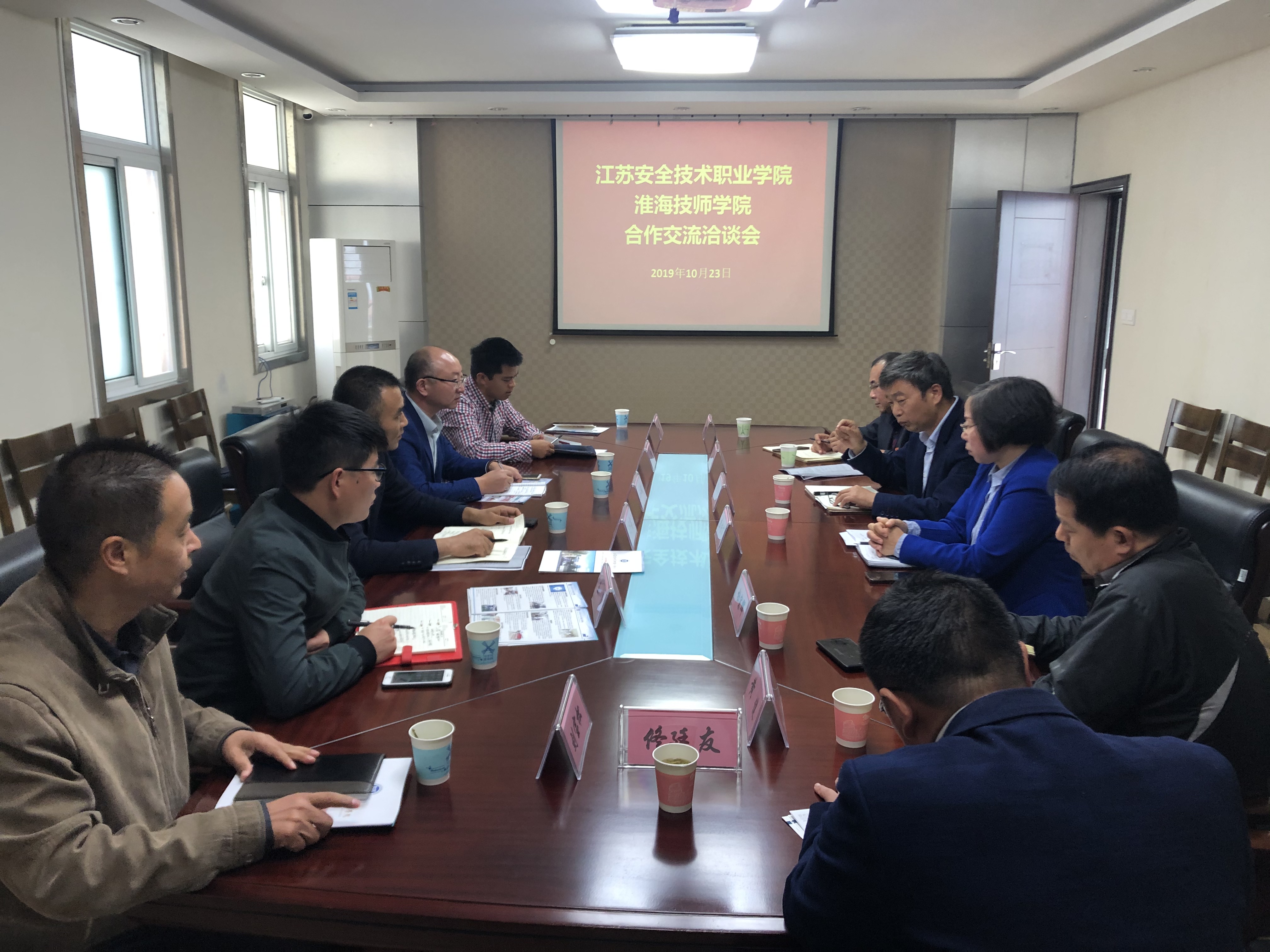 为了进一步加强专业和课程建设,提高办学水平和人才培养质量,拓宽学生升学就业渠道,10月23日,院委委员、党政办公室主任朱宇亮率领相关部门负责人等一行6人赴江苏安全技术职业学院和淮安信息职业技术学院考察交流,主要就开展中高职衔接分别与两高校进行交流洽谈。
