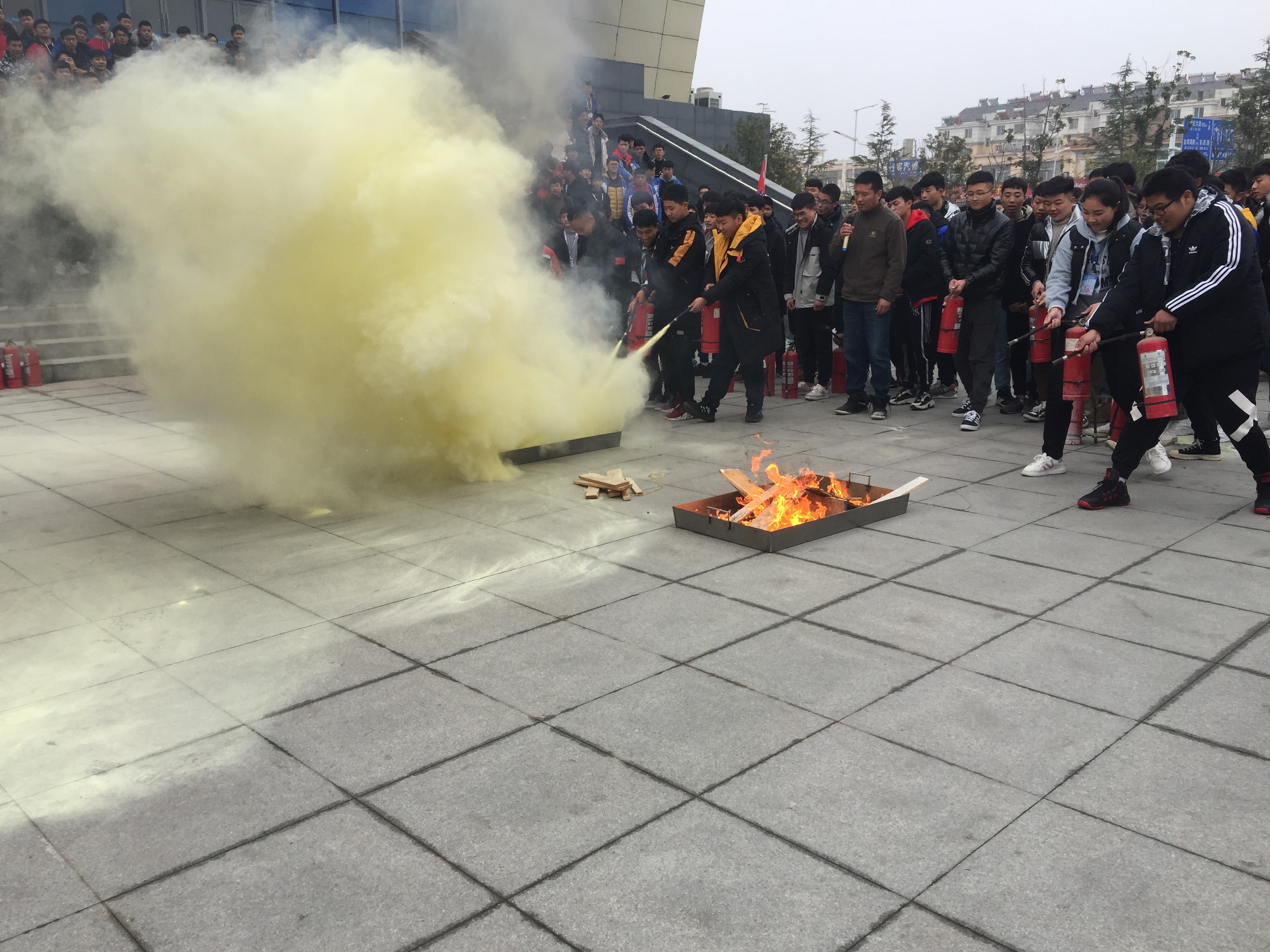 负责老师详细地向在场师生讲解了消防安全的重要性及灭火器的使用方法、注意事项,并进行了演示。随后,同学们充分运用消防知识,按照操作步骤沉着冷静完成,整个演练过程组织有序、分工到位、有条不紊、取得了明显的效果。