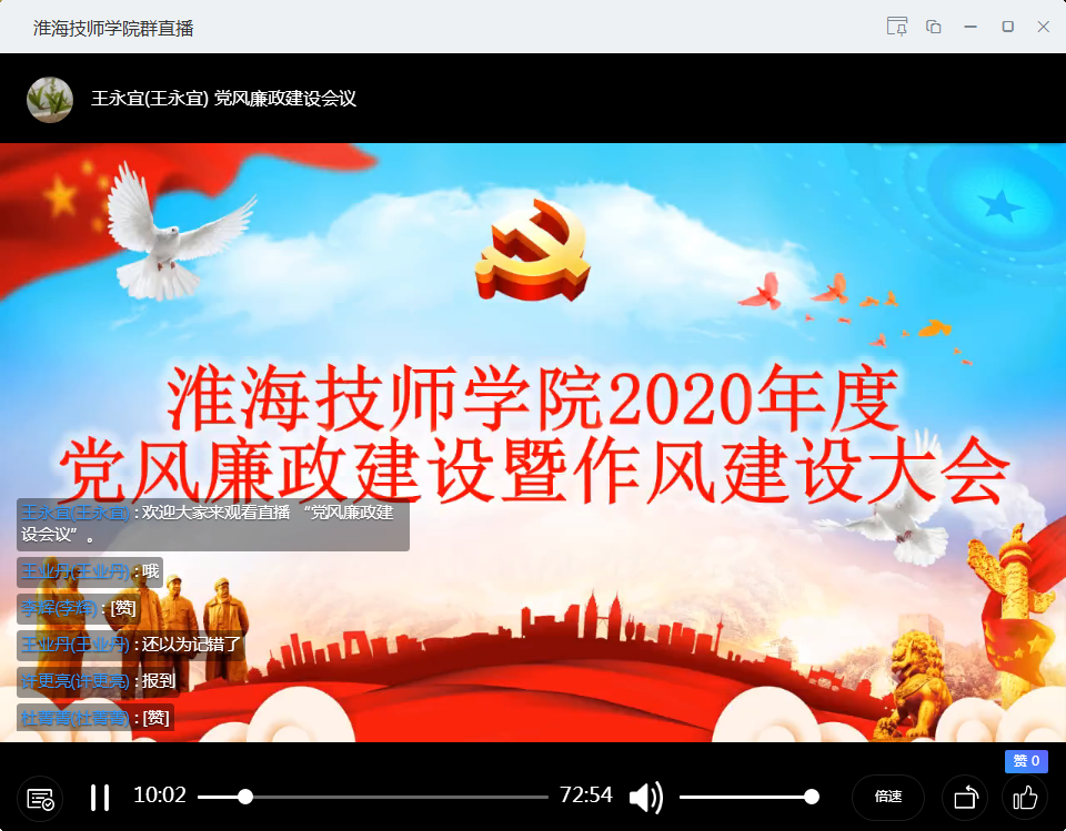 胡方军宣读了学院2020年度党风廉政建设及作风建设工作要点,强调将从五个方面推进学院党风廉政建设及作风建设。一是一以贯之把党的政治建设摆在首位;二是持之以恒抓好作风建设;三是与时俱进推进党的纪律建设;四是加强对突出问题整改的监督,压实问题整改“后半篇文章”;五是发挥纪委专责监督作用,加强对权力运行的监督。