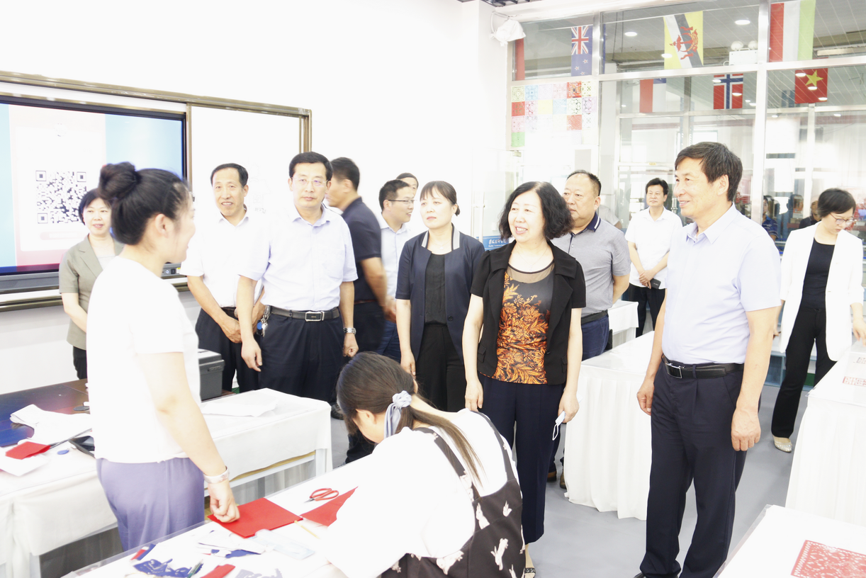 李瑞华一行先后参观了学院高铁乘务实训中心、天岗锣鼓特色班、烙书烙画工作室、泥塑工作室、剪纸艺术工作室、数控加工实训中心、机械加工实训中心、国家技能大师工作室、安全考核基地、汽车喷漆国赛集训基地、机器人实训中心等地。
