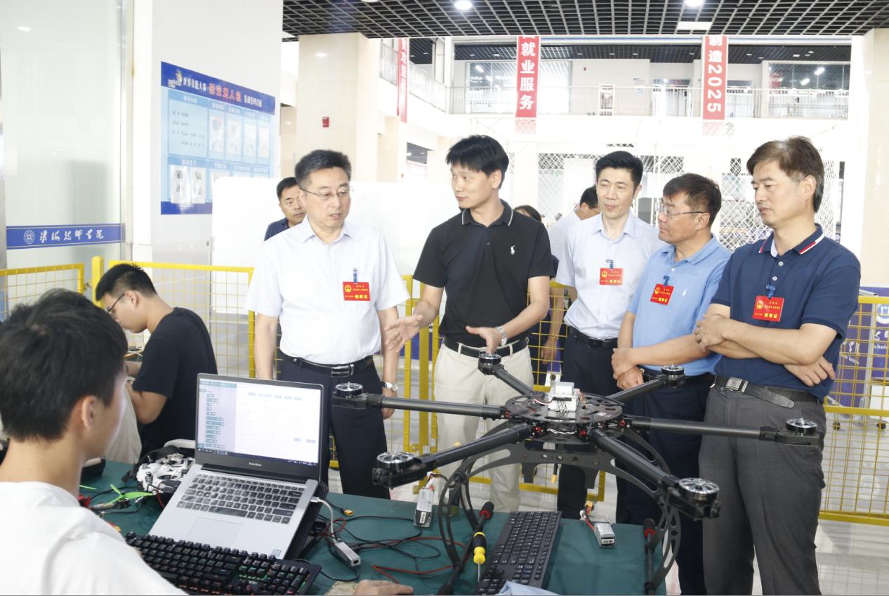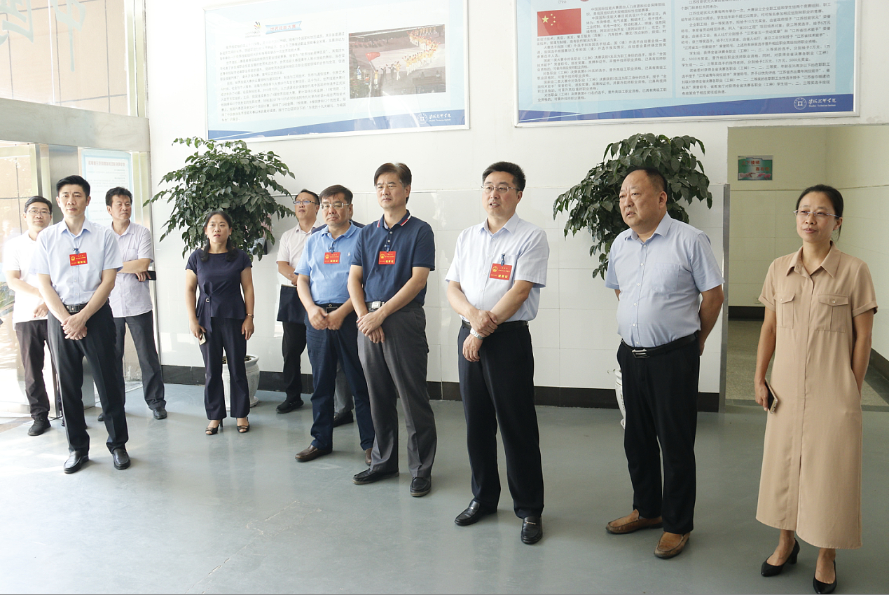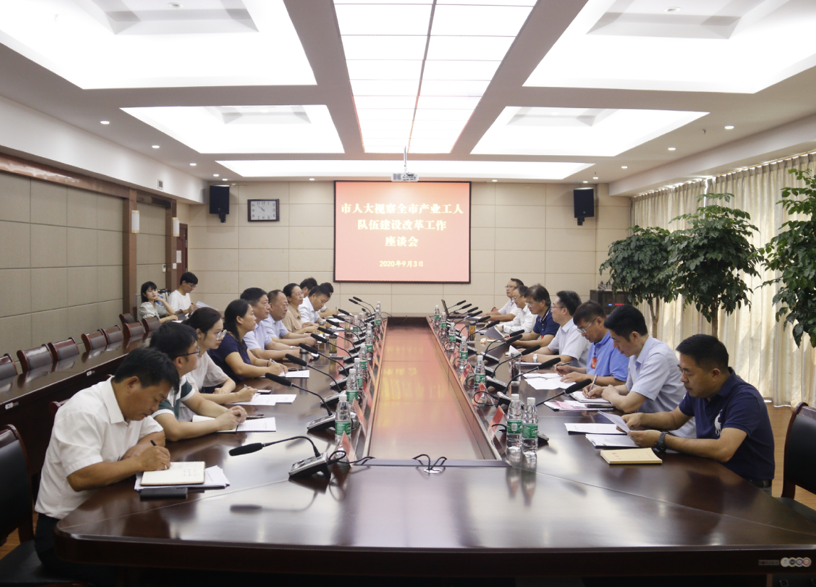9月3日上午,市人大常委会副主任何通带领市人大委员、市人社局、市教育局、市财政局、市国资委等相关负责人对全市产业工人队伍建设改革工作进行专题视察,并在我院召开专题座谈会。学院党委领导班子及相关部门负责人陪同视察。