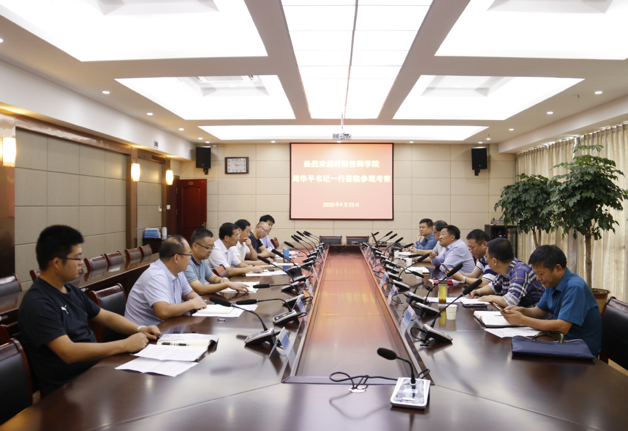 9月23日,盱眙职业教育集团党委书记、校长周华平率盱眙技师学院相关部门负责人等一行6人到我院考察交流。学院院长、党委副书记张兵营,党委委员、副院长王治陪同参观并出席座谈会。学院院委委员、培训处处长李刚,教务处、科研处、培训处、机电工程系等相关部门负责人参加活动。