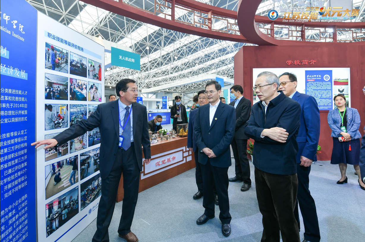 展会期间,人社部副部长汤涛、江苏省人民政府副省长惠建林、人社部职业能力建设司司长张立新、省人民政府副秘书长黄澜、省人社厅厅长戴元湖、副厅长顾潮、宿迁市政府副市长曹秀明、宿迁市人社局局长孙登怀等领导先后到学院展位参观,对学院办学成果给予高度评价和肯定,希望学院加强技能人才培养,为经济社会发展提供更多的人才支撑。学院院长张兵营在现场做了详实的介绍与解读。