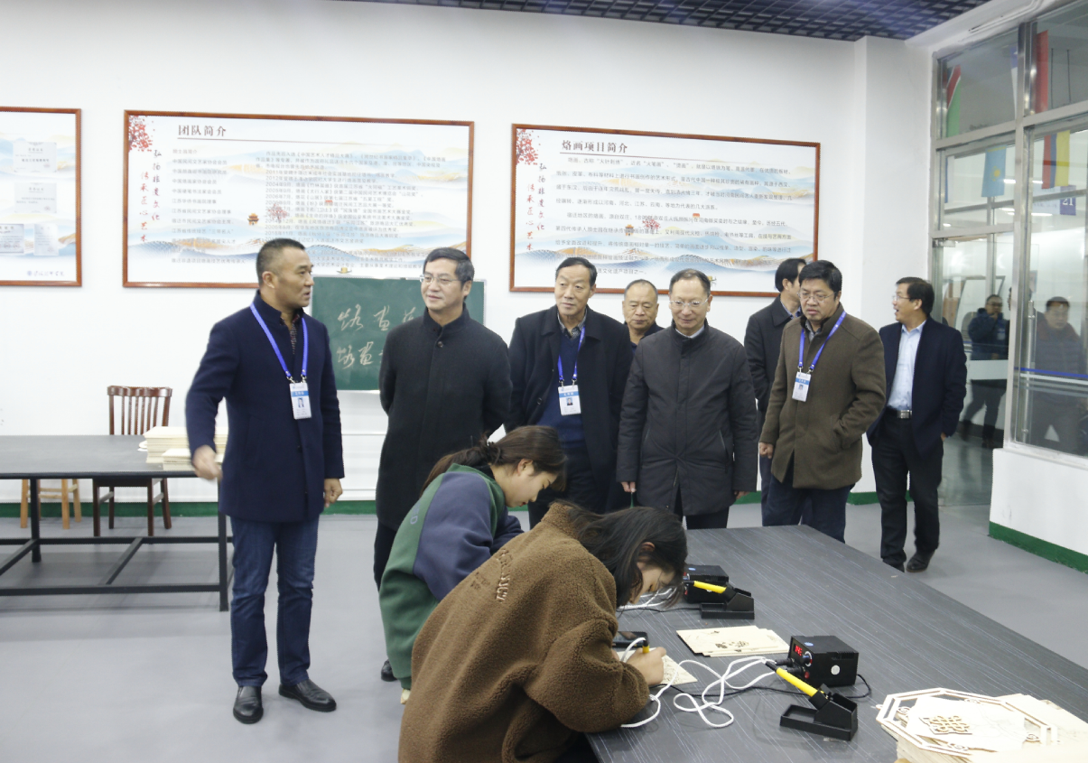 章结来一行先后参观了学院校史馆、图书馆、高铁乘务实训中心、天岗锣鼓特色班、烙书烙画工作室、泥塑工作室、剪纸艺术工作室、数控加工实训中心、机械加工实训中心、国家级技能大师工作室、安全考核基地、汽车喷漆国赛集训基地、机器人实训中心等地,对学院实训基地建设、设施设备管理等情况给予了高度赞扬。