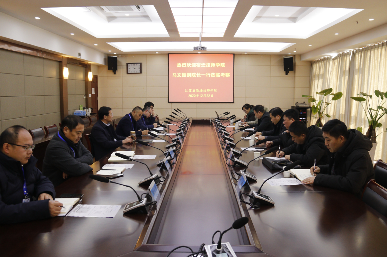12月22日上午,宿迁技师学院副院长马文振、副校长孙逾东等一行七人到我院参观交流。我院院长张兵营、副院长朱宇亮,党政办、教务处、科研处、培训处、招生就业处等部门负责人参加座谈交流。