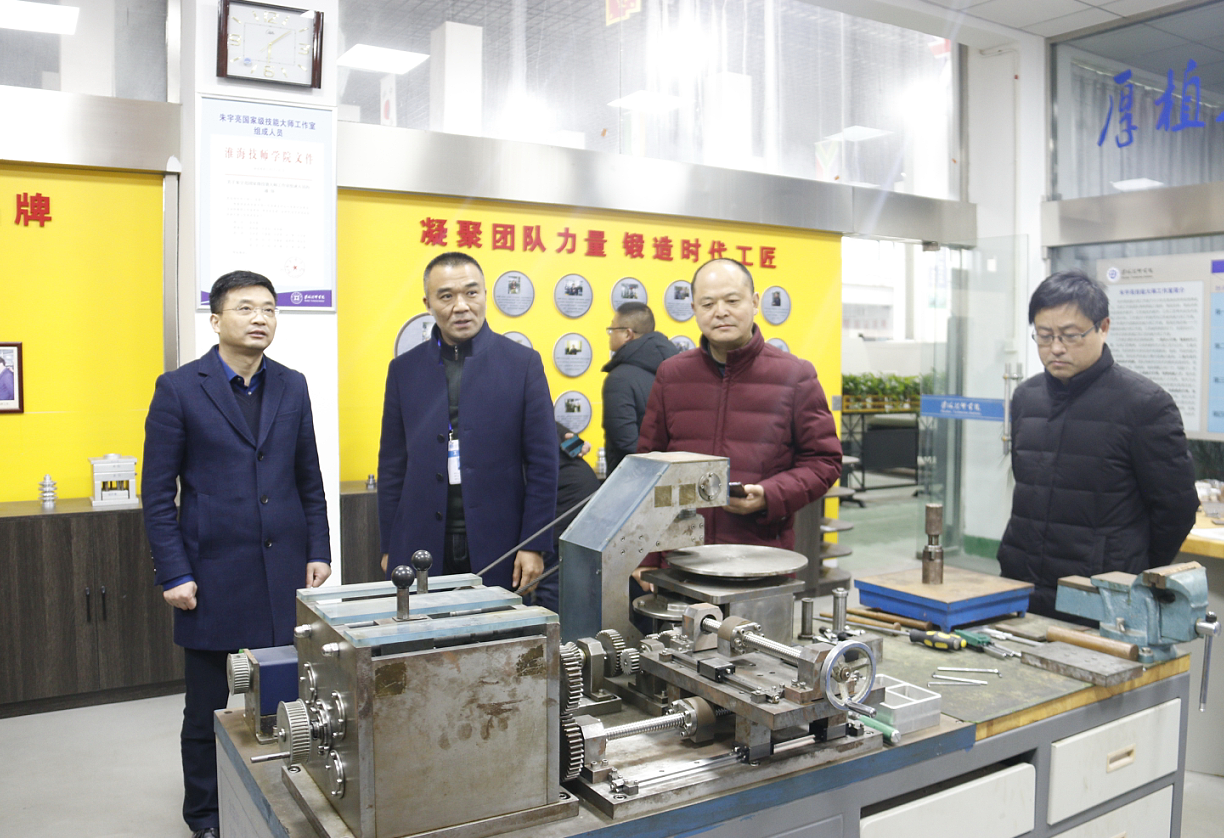 游春飞一行先后参观了学院校史馆、图书馆、高铁乘务实训中心、天岗锣鼓特色班、烙书烙画工作室、泥塑工作室、剪纸艺术工作室、数控加工实训中心、机械加工实训中心、国家级技能大师工作室、安全考核基地、汽车喷漆国赛集训基地、机器人实训中心等地,对学院实训基地建设、设施设备管理等情况给予了高度赞扬。