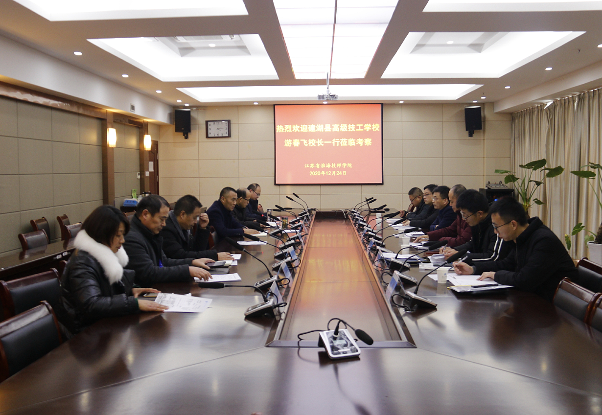 12月24日下午,建湖县高级技工学校校长游春飞等一行八人到我院参观交流。我院副院长朱宇亮,党政办、教务处、学工处、培训处、技能鉴定所等部门负责人参加座谈交流。