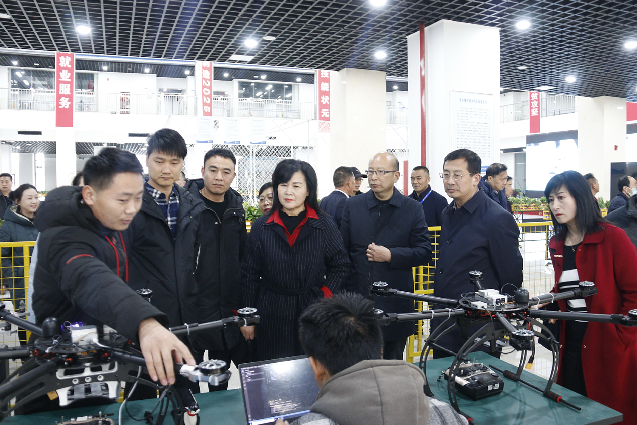 武平一行先后参观了学院校史馆、图书馆、高铁乘务实训中心、电商实训中心、天岗锣鼓特色班、烙书烙画工作室、泥塑工作室、剪纸艺术工作室、数控加工实训中心、机械加工实训中心、国家级技能大师工作室、安全考核基地、汽车喷漆国赛集训基地、机器人实训中心等地,对学院实训基地建设、设施设备管理等情况给予了高度赞扬。
