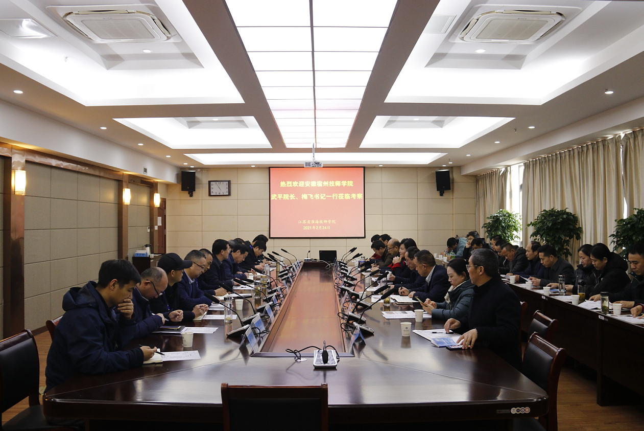 2月24日,安徽宿州技师学院院长武平、党委书记梅飞率相关部门负责人一行20余人到我院参观交流。学院院长、党委副书记张兵营,党委委员、副院长王治、副院长朱宇亮等热情接待了宿州技师学院一行。