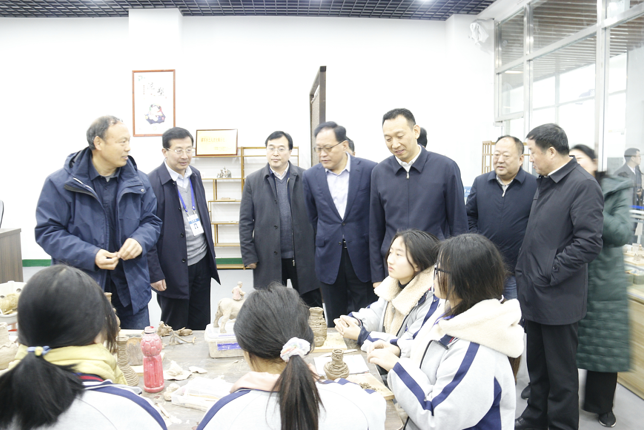 徐文进一行先后参观了学院高铁乘务实训中心、电商实训中心、天岗锣鼓特色班、烙书烙画工作室、泥塑工作室、剪纸艺术工作室、数控加工实训中心、机械加工实训中心、国家级技能大师工作室、安全考核基地、汽车喷漆国赛集训基地、机器人实训中心等地,对学院实训基地建设、学生实习实训管理等情况给予了高度赞扬。