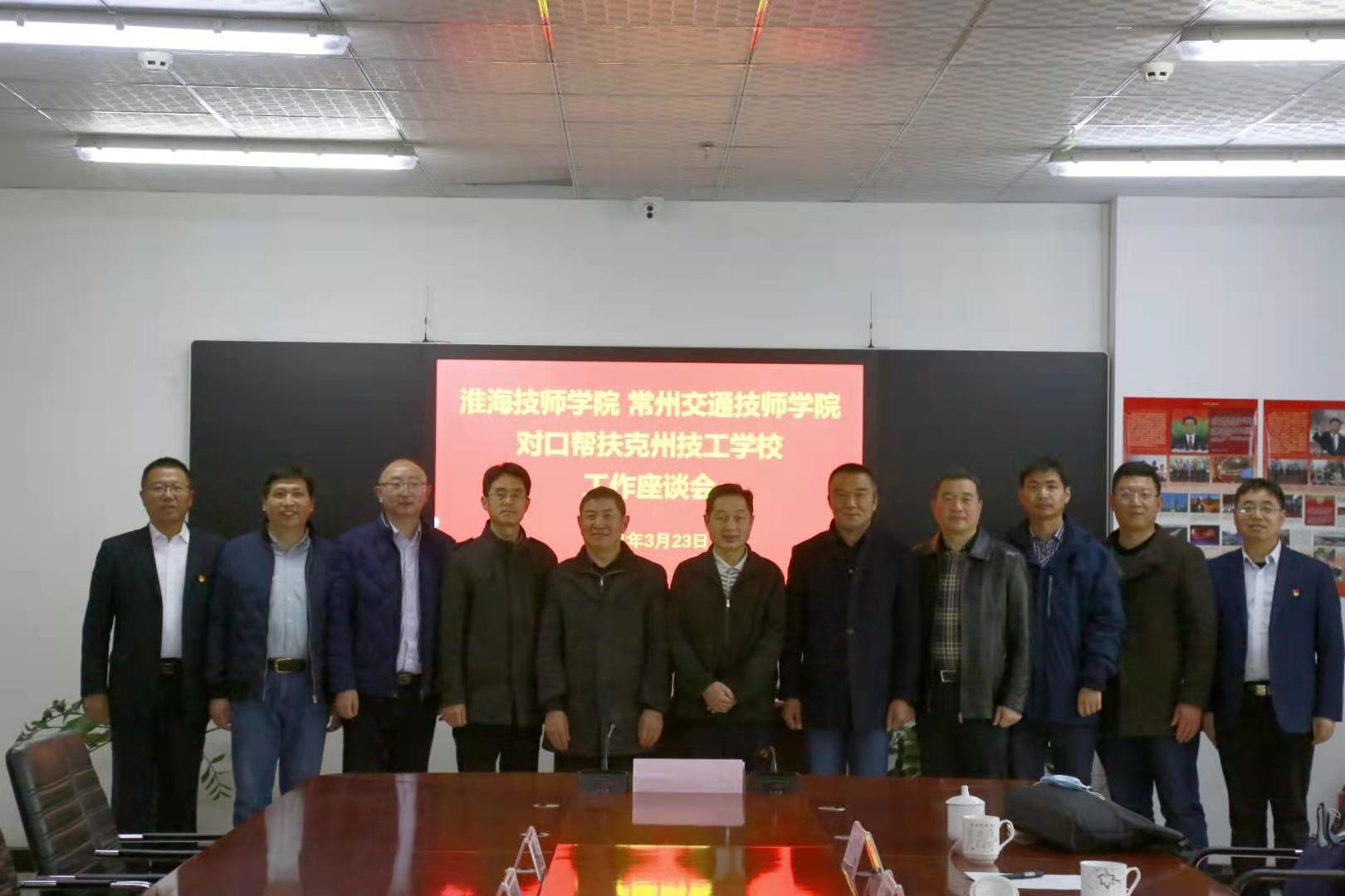 为深入贯彻人社部关于支持“三区三州”扶贫攻坚通知精神,加快推进省人社厅三、四月份援疆建设计划,2021年3月21日—26日,江苏省淮海技师学院派出首个对口援建工作团队赶赴新疆克州技工学校,就落实对口支援协议及三年援建实施方案全面开展工作。援建工作团由学院副院长朱宇亮带队,共5人组成,包括援建项目办、采购办、创建办及相关系部负责人。克州技工学校党委书记罗锦勋、校长郭江峰等领导对援建工作团一行热情接待并全程陪同。