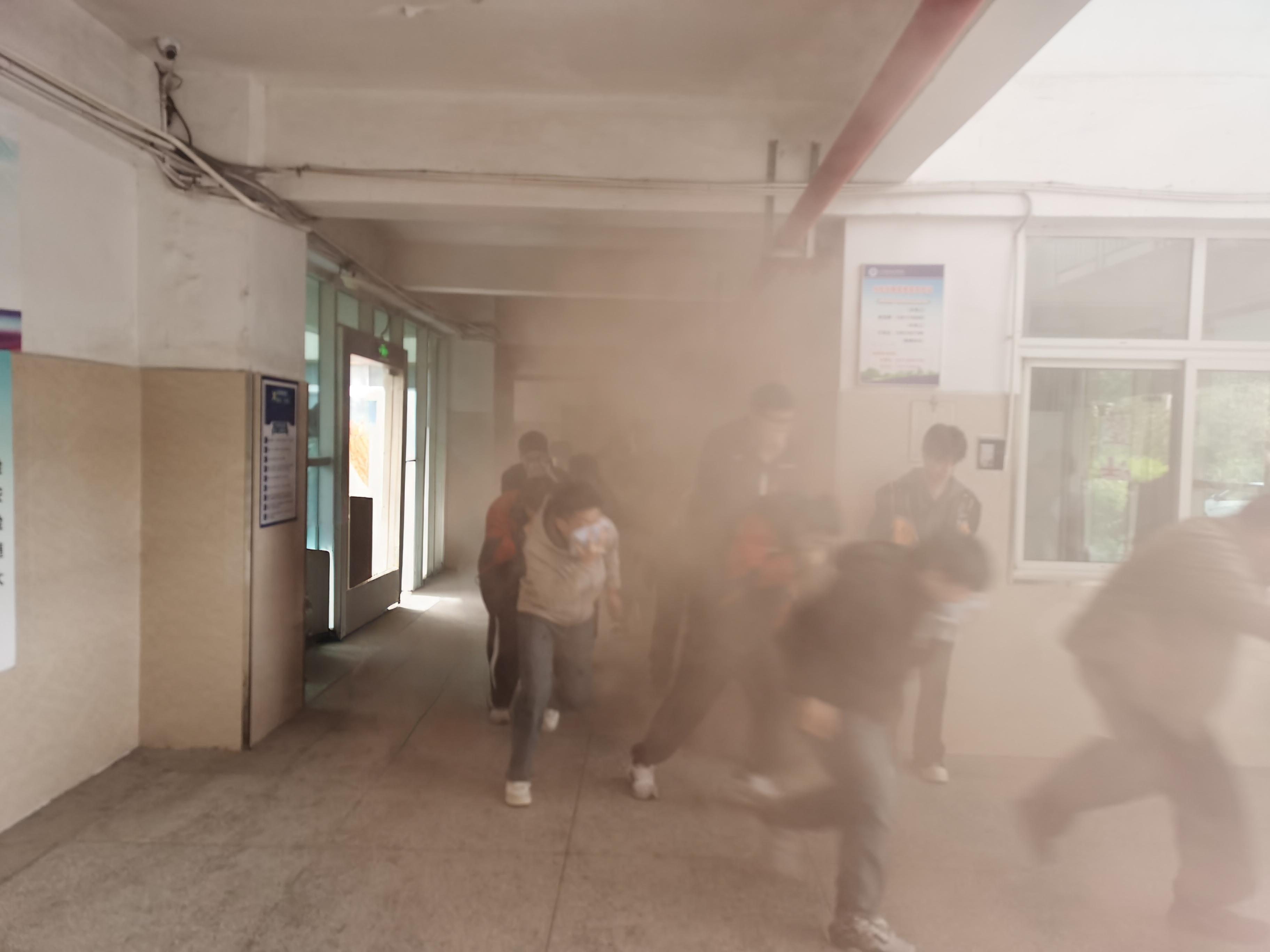 演习模拟了宿舍突发火灾险情。警报声响起,在志愿者、班主任的统一指挥下,同学们迅速做出应急反应,纷纷用衣物或湿毛巾捂住口鼻,保持弯腰低头的安全姿势,沿着提前规划的疏散通道,快速、有序地从宿舍各个楼层撤离,整个过程紧张有序、行动迅速,无拥挤、喧哗、掉队情况发生。