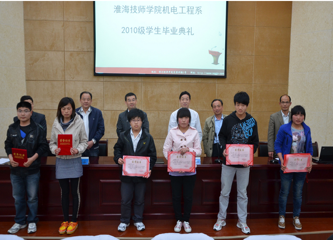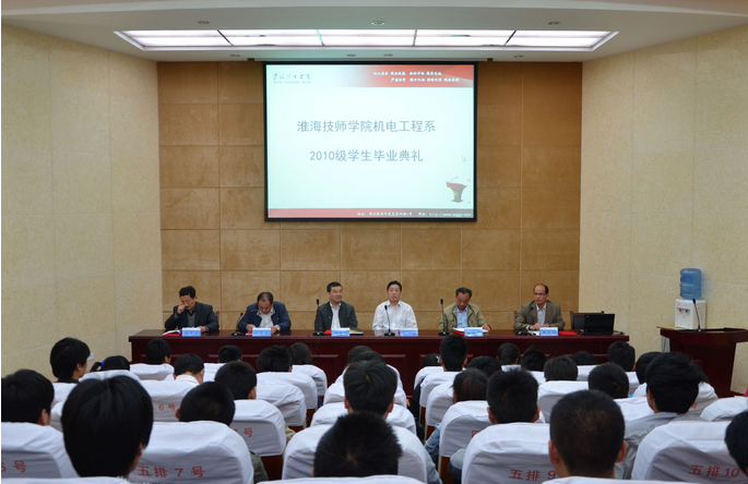 机电工程系2010级学生毕业典礼于2012年4月25日下午4时在院第二阶梯教室召开,此次毕业典礼由机电工程系主任王永宜主持,院领导庞志勤、王治、姚嵩山、陈元文、王慎南及10级全体师生参加此次毕业典礼。