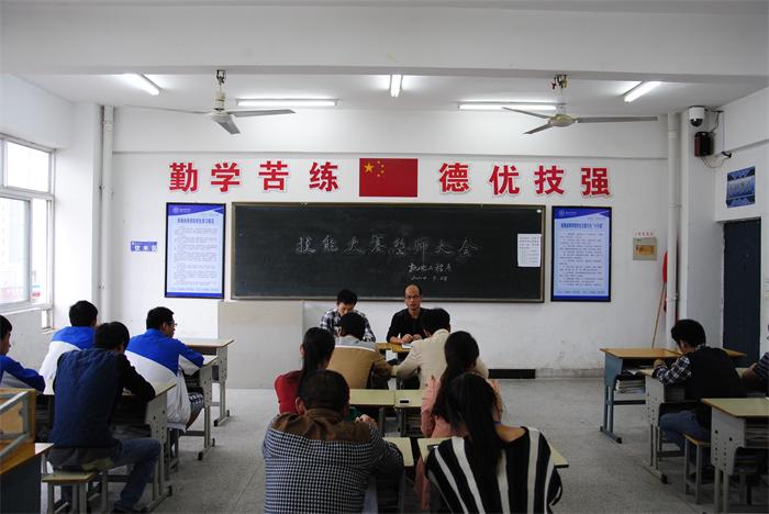 9月29日,机电工程系召开了2014年宿迁市技能大赛誓师大会。 会议指出参加技能大赛对每个参赛选手来说即是机遇也是挑战,“谁英雄,谁好汉,大赛场上比比看”,只要努力了,就一定能赛出水平,赛出机电系的风采。机电工程系本次共派出13名师生参加了电子装配与调试、电气安装与维修、机电一体化安装与调试三个项目的比赛。为了训练出效果,要求教练要认真研读比赛方案,列出队员详细训练计划表,确保训练质量。