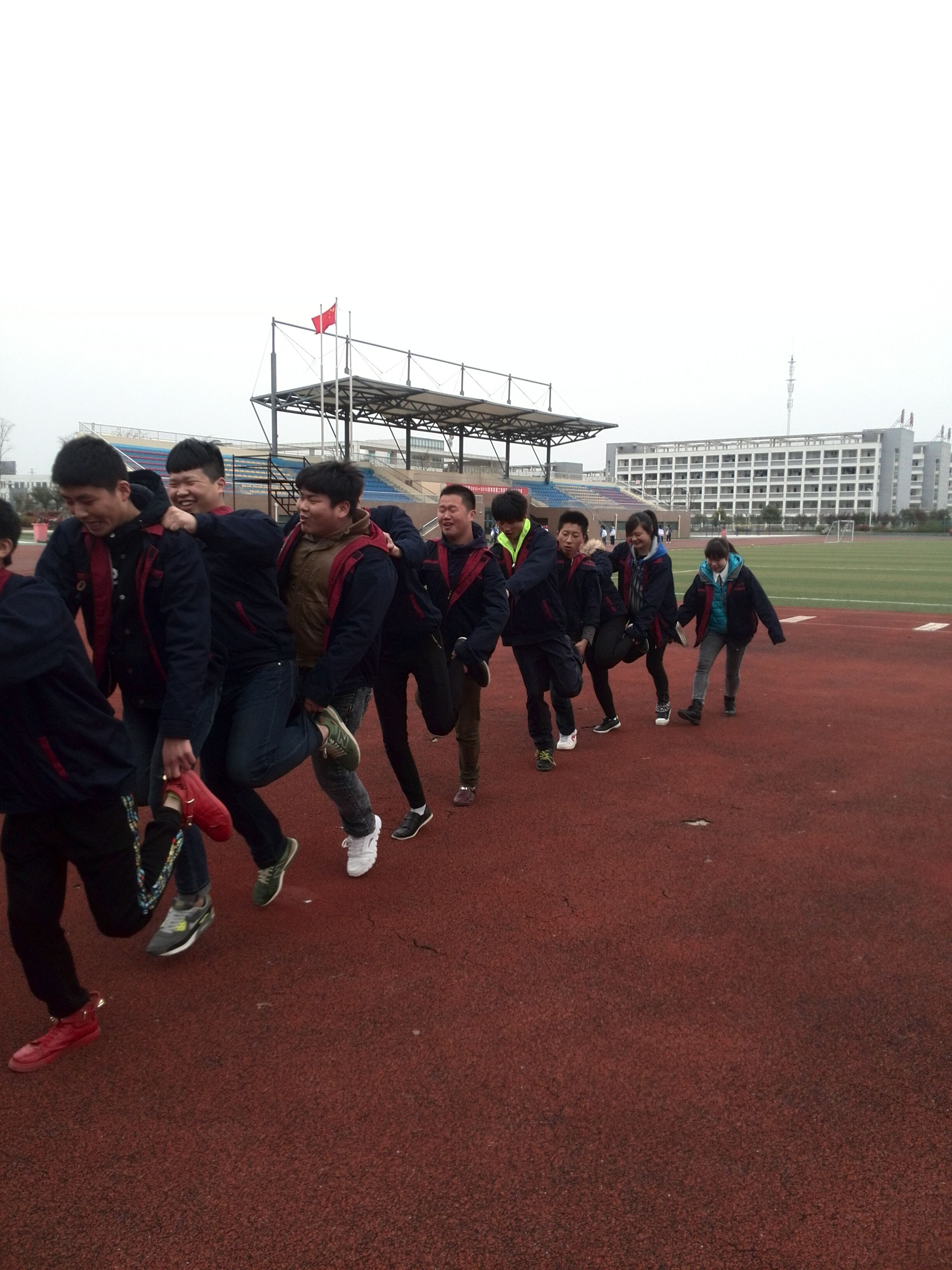 为了培养学生的团队合作精神,加强学生之间的凝聚力,队员之间的协调能力。数控系13数控班于4月7日下午课外活动期间在田径场举行了一场团队合作项目训练,此次活动由班主任组织全班同学参与,所有同学按照报数形式分成两组,整个过程有两个活动版块,首先是坐地起身活动;要求四个人一组,围成一圈,背对背的坐在地上; 在不用手撑地站起来; 随后依次增加人数,每次增加2个直至10人。 在此过程中,工作人员要引导同学坚持,坚持,再坚持。然后是链接加速活动;要求是参加游戏者为一组,后边的人左手抬起前边的人的左腿,右手搭在前边的人的右肩形成小火车,最后一名同学也要单脚跳步前进,不能双脚着地。场地上划好起跑线和终点线,其距离为30米,游戏开始时,各队从起跑线出发,跳步前进,绕过障碍物回到起点,最先到达起点的为胜。按时间记名次,按名次记分。 落后的一组是所有组员每人一起做俯卧撑20个作为惩罚。通过此次活动同学们感受到的是:很累,但超值。