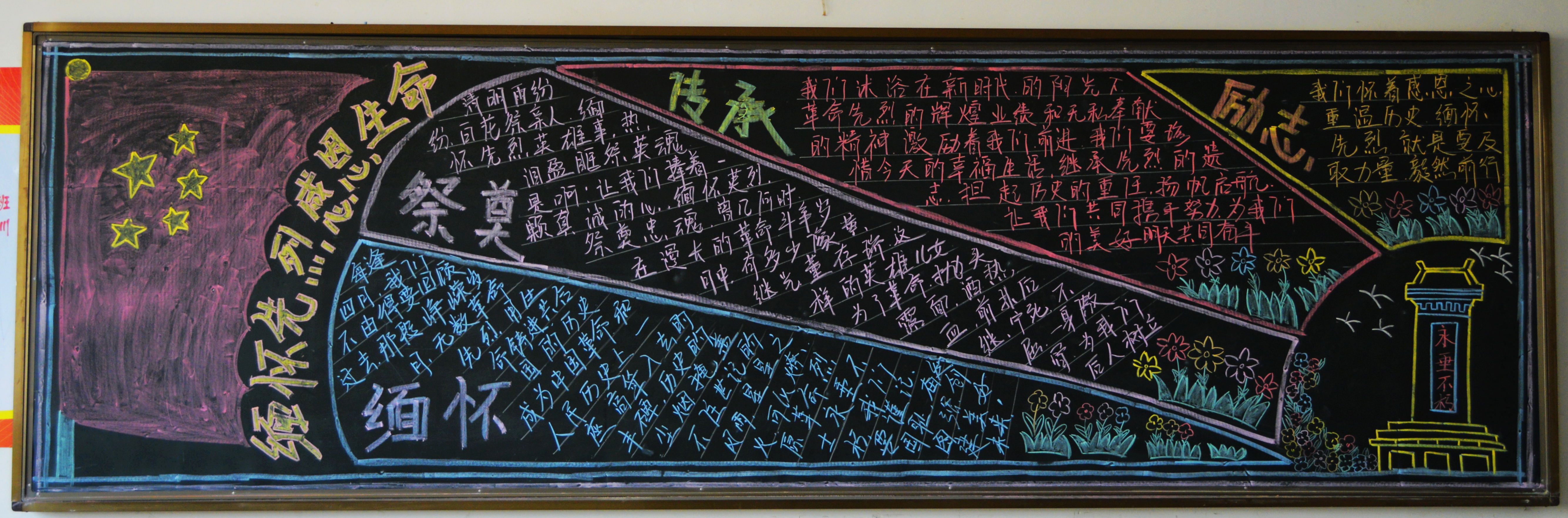 为传承中华民族的革命优良传统,缅怀革命先烈的丰功伟绩,4月17日,机电工程系组织开展了“缅怀革命先烈,争做文明学生”主题黑板报评比活动。
