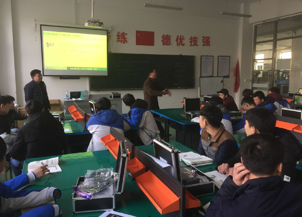 在我院大力推行的“单科精进”教学改革中,机电工程系敢试敢闯,勇于尝试,与企业共同开发了一体化课程教学资源。 2月14日,15机器人2班的课堂便迎来了新伙伴——上海厚载智能科技的人工智能移动机器人。这是机电工程系首次尝试校企双方共同实施教学的结果。
