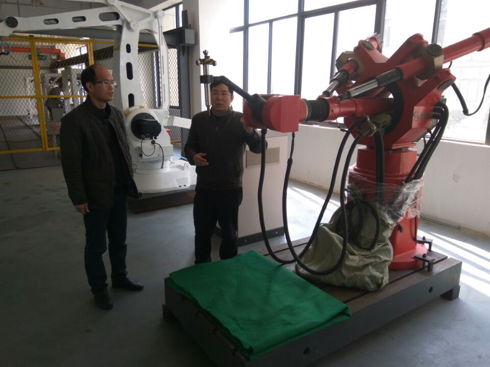 在研究院总经理徐俊的带领下,王永宜一行参观了该院的成果展览室,观摩了机器人表演,并就工业机器人现状、发展趋势以及人才需求等方面与该院专家进行了深入细致的交流。通过考察交流,调研小组认识到了机器人产业发展前景十分广阔,王永宜表示要紧紧抓住学院工业机器人应用与维护实训基地建设的机遇,大力推动设备、人才、技术、项目等要素集聚,努力建设具有前瞻性和应用性的国家级工业机器人实训基地,为中国制造2025培养更多应用型人才。