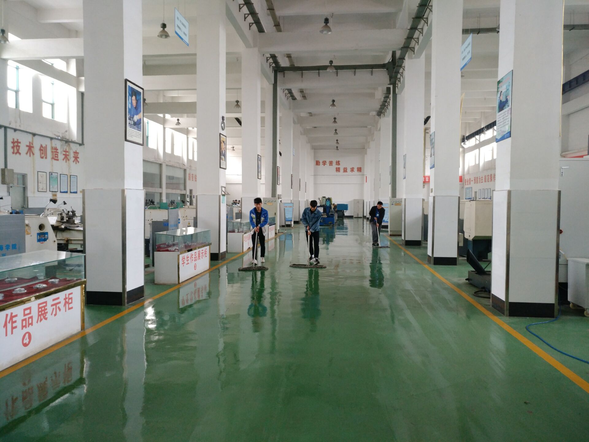 在王勇、李宁两位老师的带领下,同学们迅速分组,到对应的实训卫生区域开始打扫卫生。只见他们有的扫地,有的拖地,有的打扫机床,有的清理卫生死角,还有的同学拿着砂纸擦到墙上的污迹。