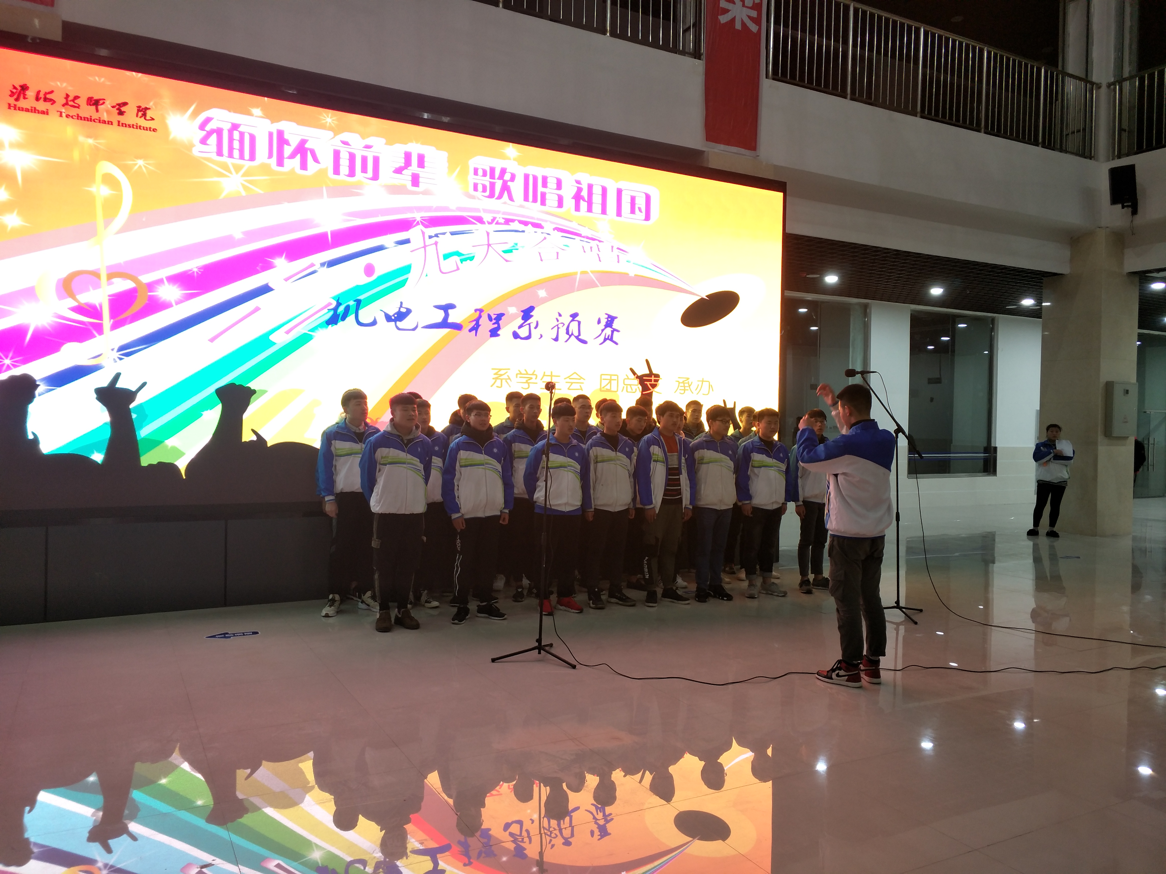 12月5日晚,机电工程系在机器人实训基地举行“一二·九”大合唱系部预赛。16支参赛队伍用嘹亮的歌声,激昂的情绪为现场观众带来了一场爱国与青春的视听盛宴。系部相关负责人、班主任携全体学生共同观看了比赛。