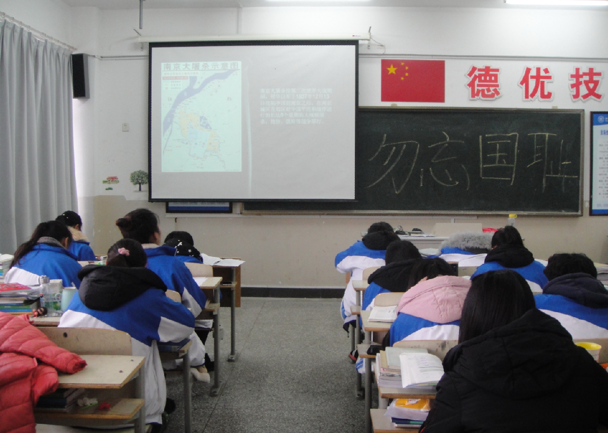 “图文解说”篇章以南京沦陷、人间地狱、烽火抗日、历史见证、正义审判为主题。吴琪老师主要以沦陷后的惨烈的屠杀现实为主体,结合史实图片资料向学生讲述了日本人在南京的残害中国同胞的方式:大规模集体屠杀、杀人竞赛、强奸、文化掠夺等。