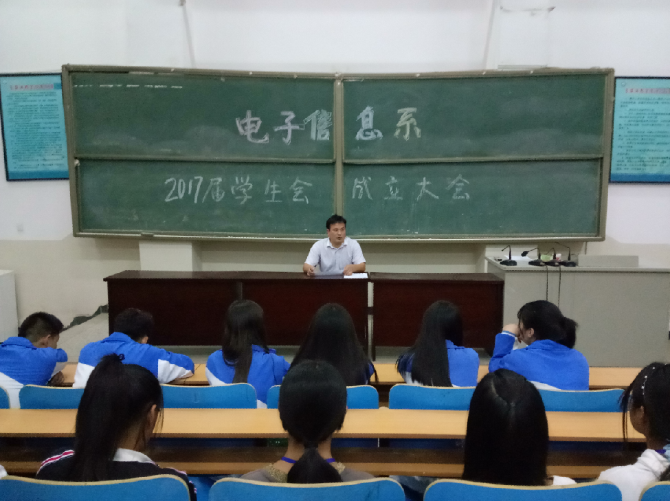 9月25日晚,电子信息系在第一报告厅举行2017级学生会成立大会。电子信息系学管负责人、系部所有学生会成员参加了大会。