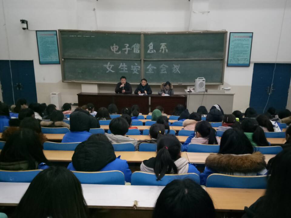 为增强女生安全防范意识,提高女生自我保护能力,促进女生身心健康发展, 1月10日晚,电子信息系组织全体女生在第一报告厅召开女生安全会议。电子信息系主任王开山、学生管理负责人及所有班主任参加了会议。