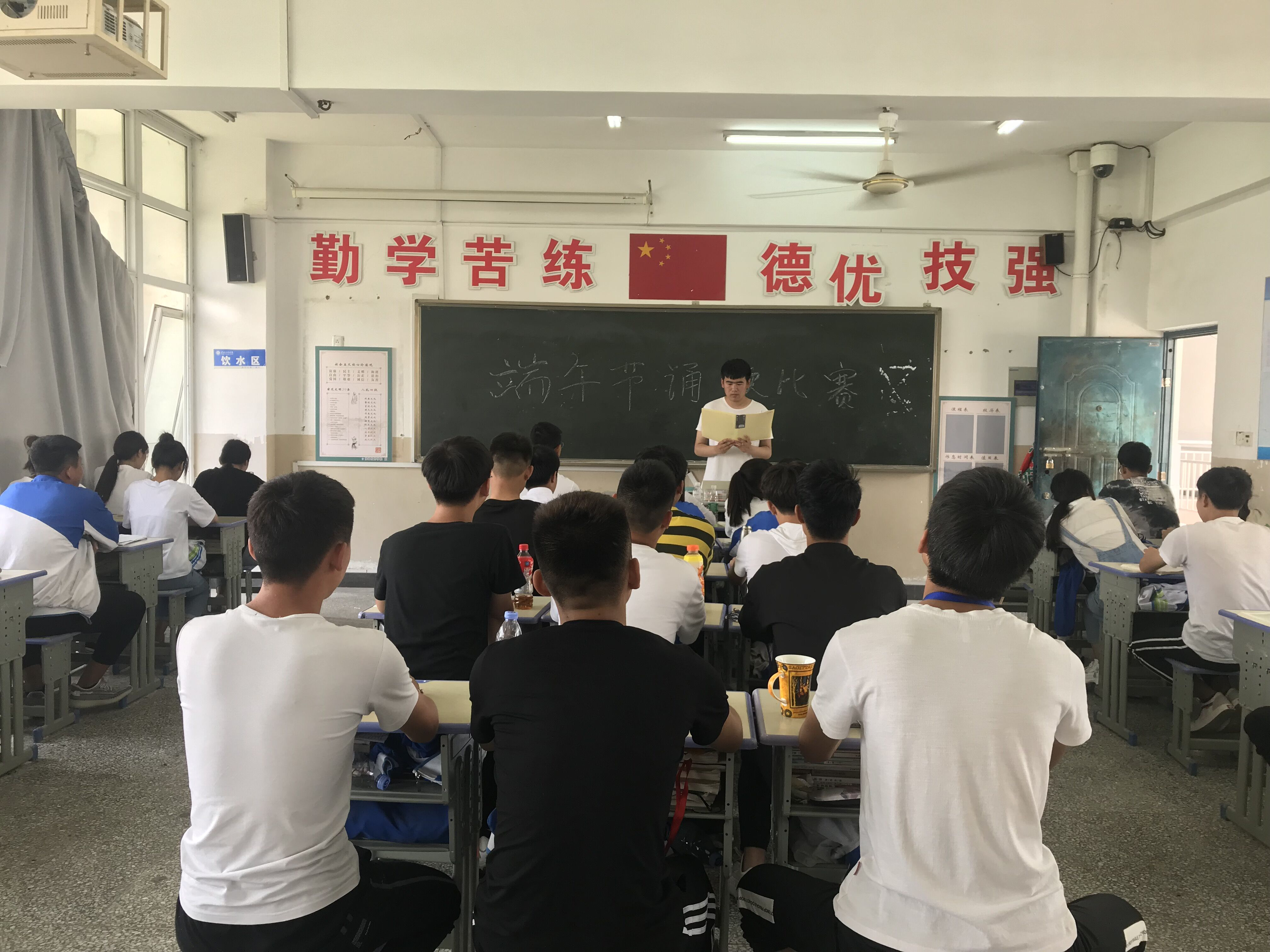 下午课外活动时间,18级的同学们在班主任的带领下在自己的班级里开始了属于他们的比赛。参加比赛的同学在讲台上充满感情的朗读着,台下的同学们听着一句句振奋人心、饱含感情的诗句,内心情感与诗歌产生共鸣,心灵受到强烈的震撼。