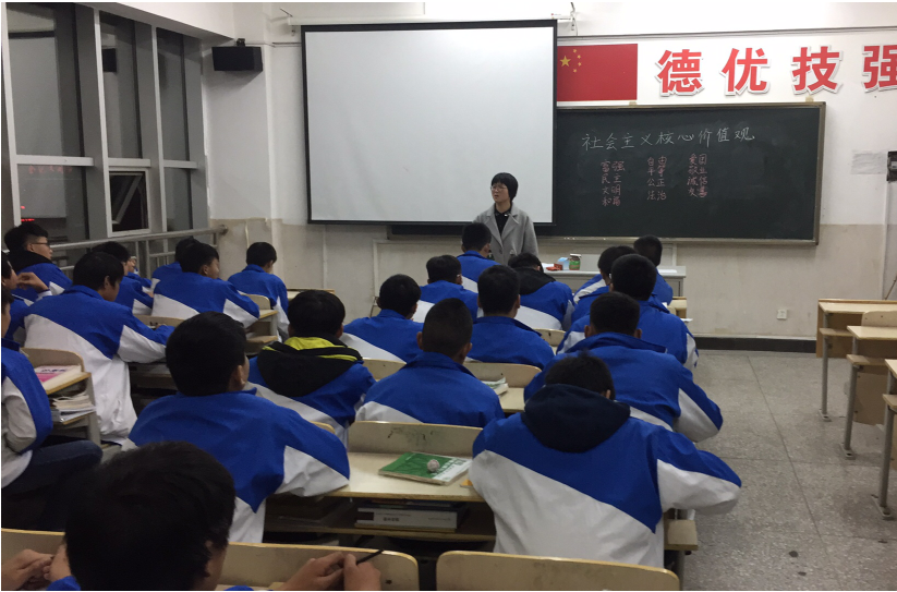 班会课从主题确定后,各个班主任积极准备,组织班长及团委书记讨论班会课具体形式及内容,确保班会课顺利进行。主要以理解社会主义核心价值观的“富强、民主、文明、和谐、自由、平等、公正、法治、爱国、敬业、诚信、友善”24字为主,让学生将社会主义核心价值观内化于心,外化于行,并找出身边的实例,用实际行动来践行社会主义核心价值观。