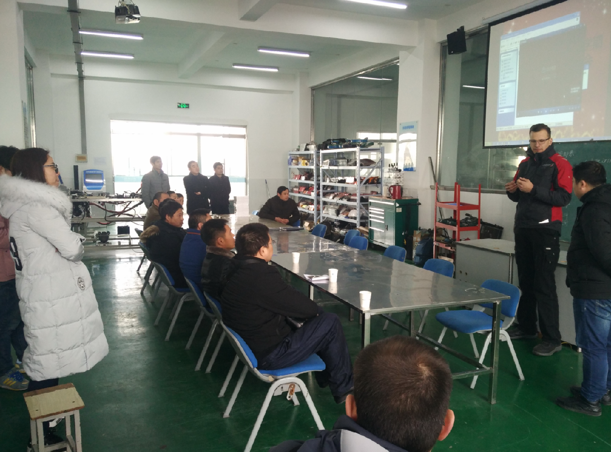 随后,班主任冯猛老师向家长们简要汇报了学生近期的学习情况、日常行为表现等。会上,几位学生代表就本学期在思想、行为习惯、学习方法、人际交往等方面取得的进步进行了总结发言。最后,家长与学生、班主任、任课教师进行了沟通交流,大家畅所欲言,不仅肯定了中德班的常规管理和日常教学活动,还对于学院发展积极建言献策。