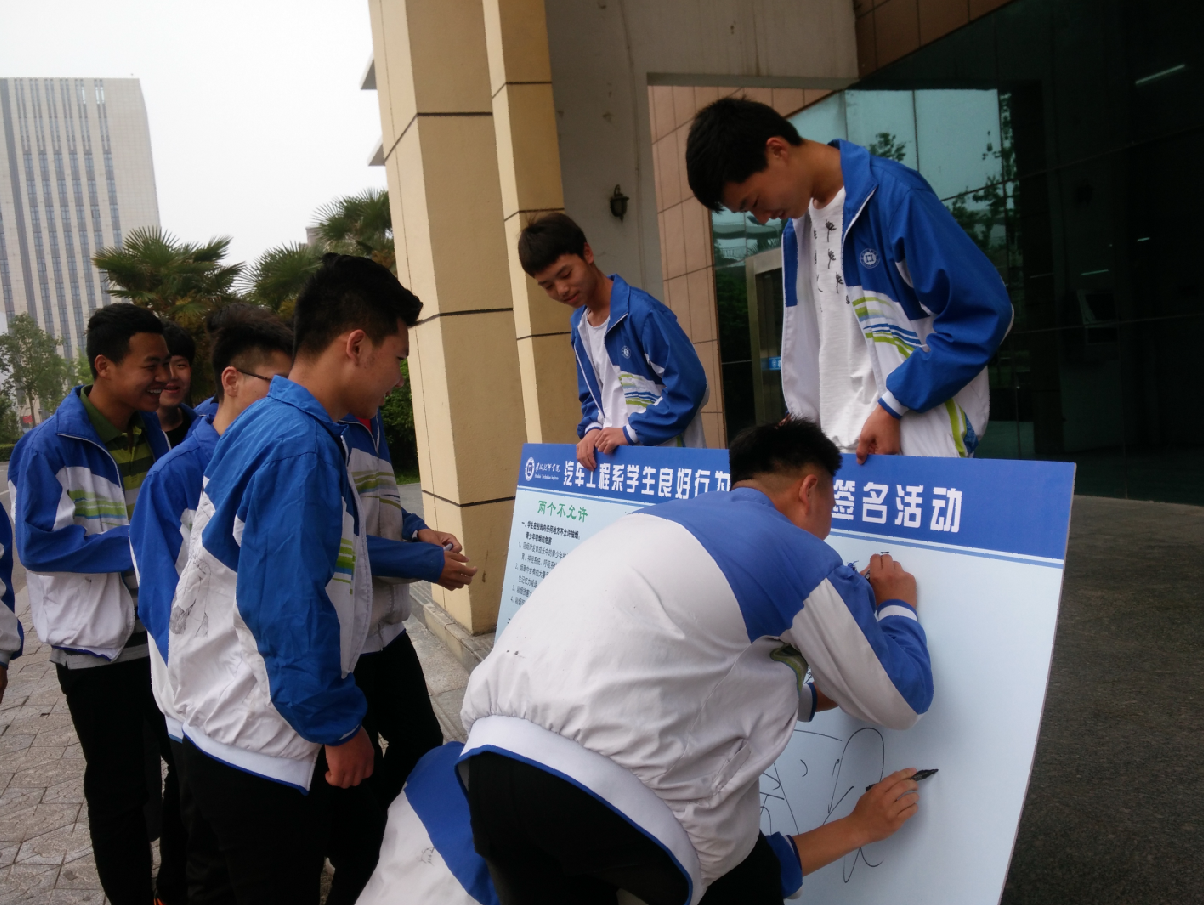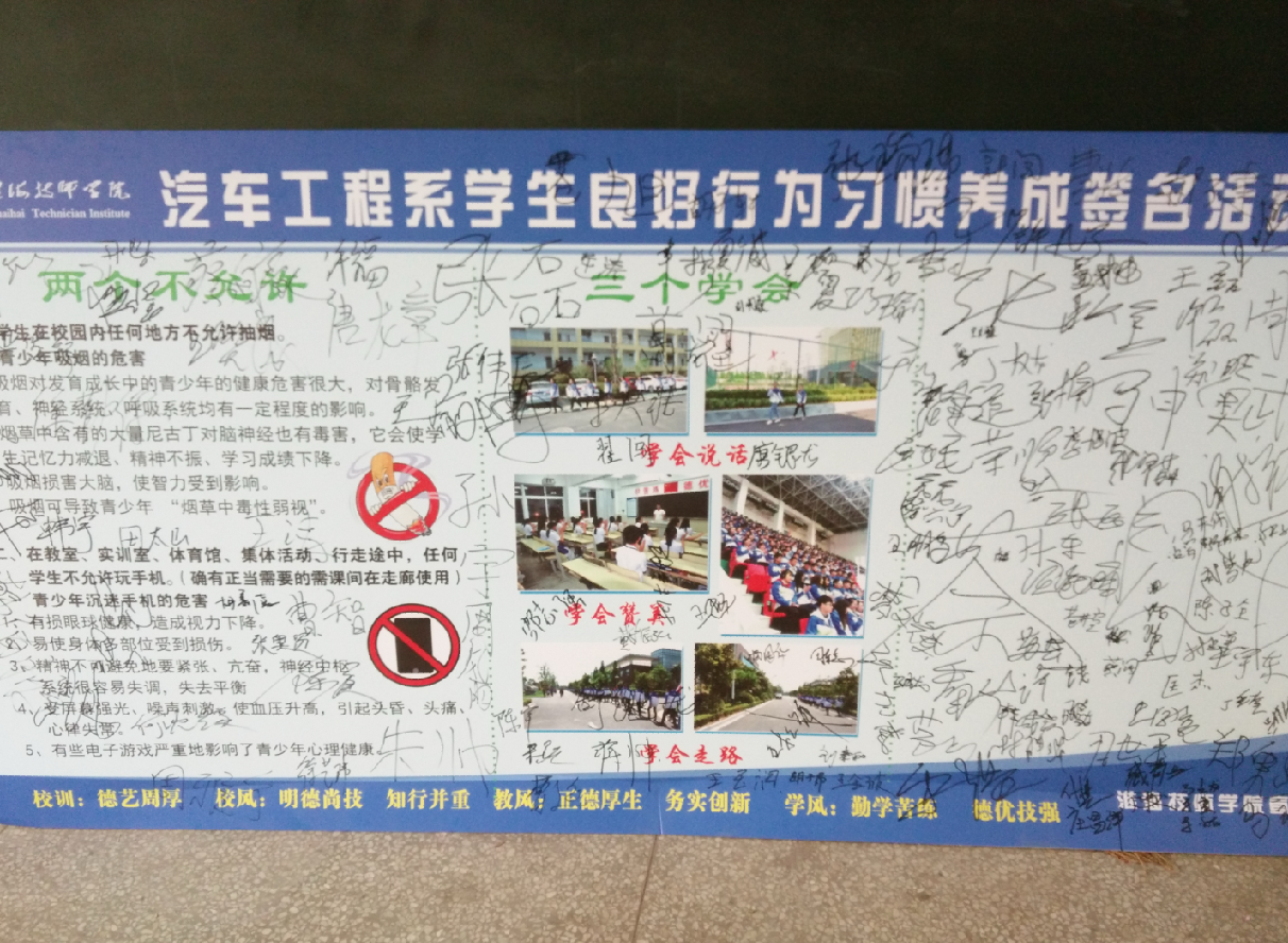 为引导学生养成良好的行为习惯,5月2日,汽车工程系组织全系学生开展良好行为习惯养成签名活动。