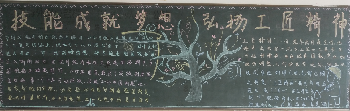此次评比活动不仅仅是一次简单的黑板报评比,更是一次深入的工匠精神的熏陶,同学们通过本次活动更加深入的认识到了技能的重要性,增强了训练技能的热情。