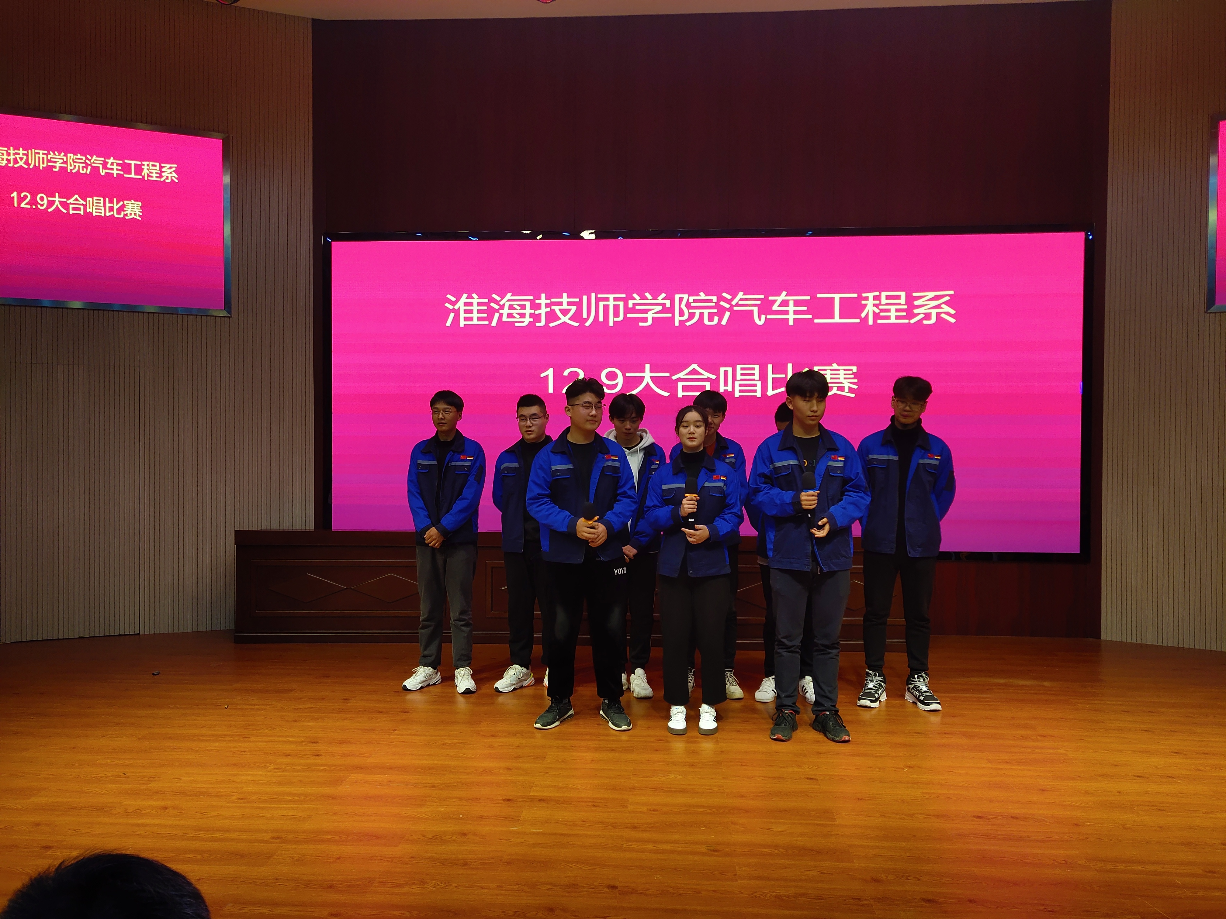 12月4日晚,汽车工程系在学院蓝海剧场举行“12·9”院歌红歌合唱比赛活动。系部各班班主任、任课教师到场观摩了比赛。