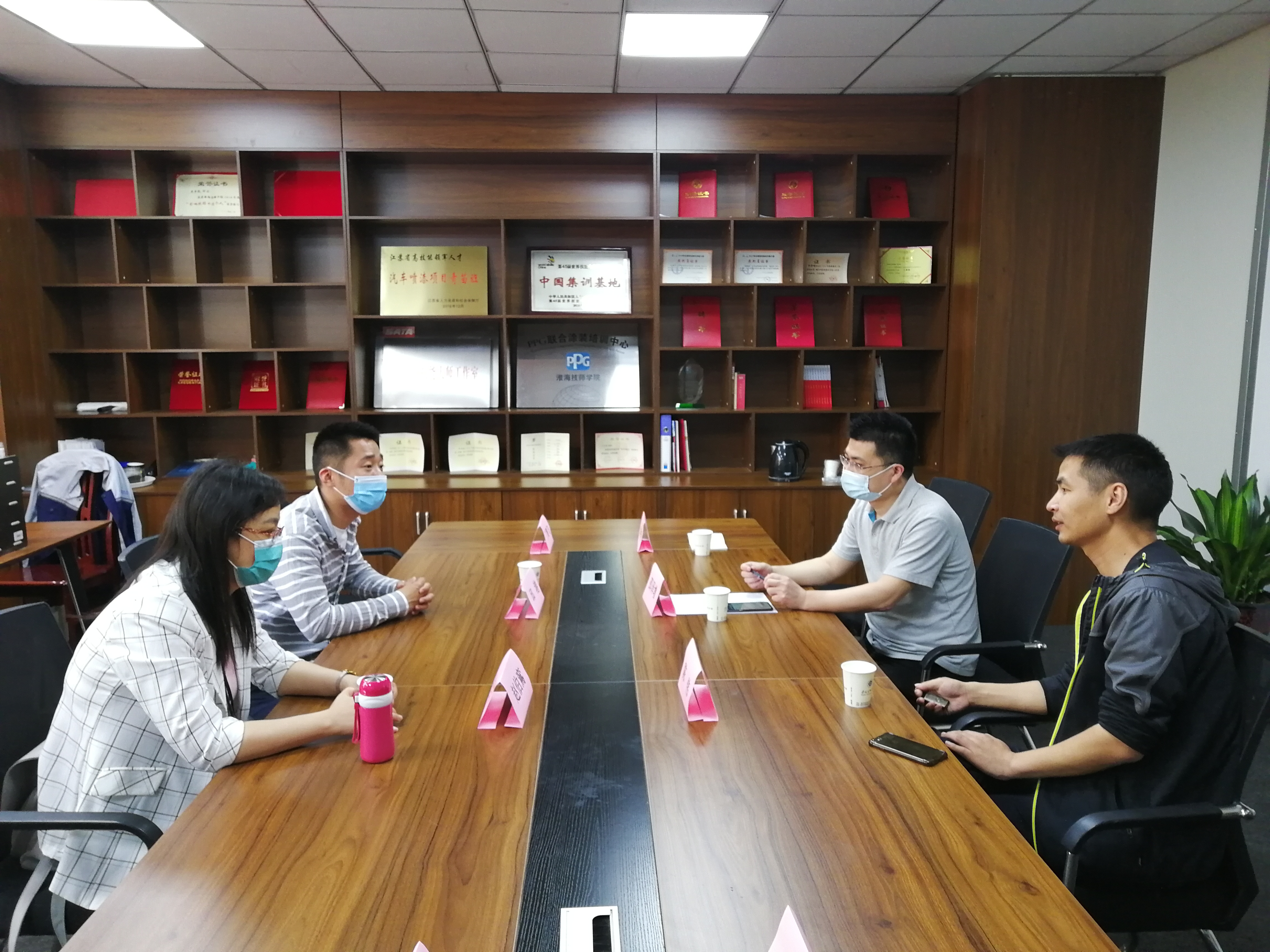 5月18日,徐州技师学院汽车工程学院副院长赵伯鵉、教务科科长邱港以及2名汽车涂装项目选手孙迪和丁腾飞到我院参观交流。我院汽车工程系负责人陈伟、教学科长邵泽增以及涂装项目负责人袁明明老师等参加座谈交流。