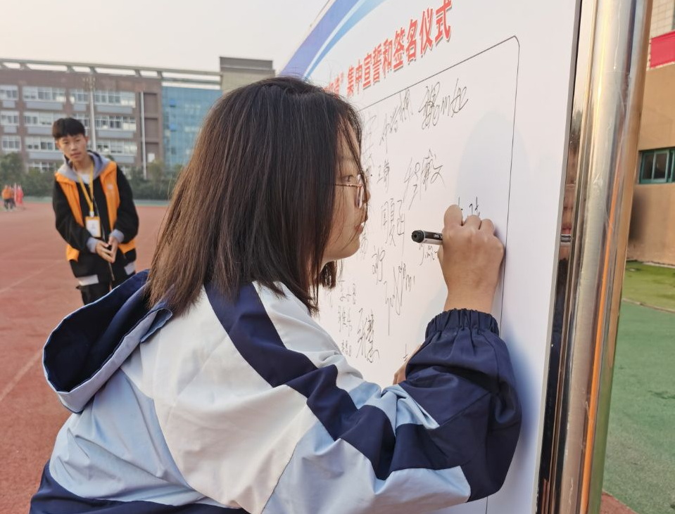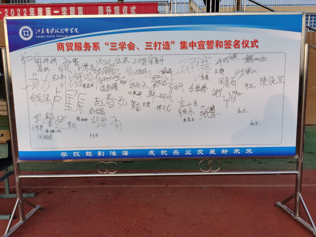 “三学会、三打造”其内涵是学会走路、学会说话、学会赞美,打造文明校园、打造特色系部、打造优秀学子,引导学生养成优秀的文明习惯。活动得到了同学们的热烈响应,现场气氛热烈,秩序井然,同学们纷纷在签名板上留下自己的签名。