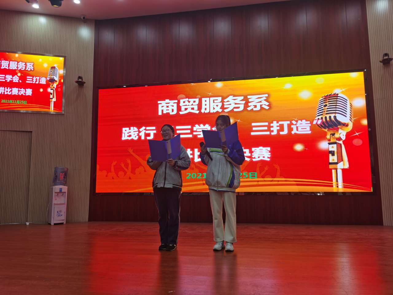 11月25日,商贸服务系在蓝海剧场举行“三学会、三打造”主题演讲比赛决赛。通过前期预赛竞选,最终有12位选手晋级决赛。
