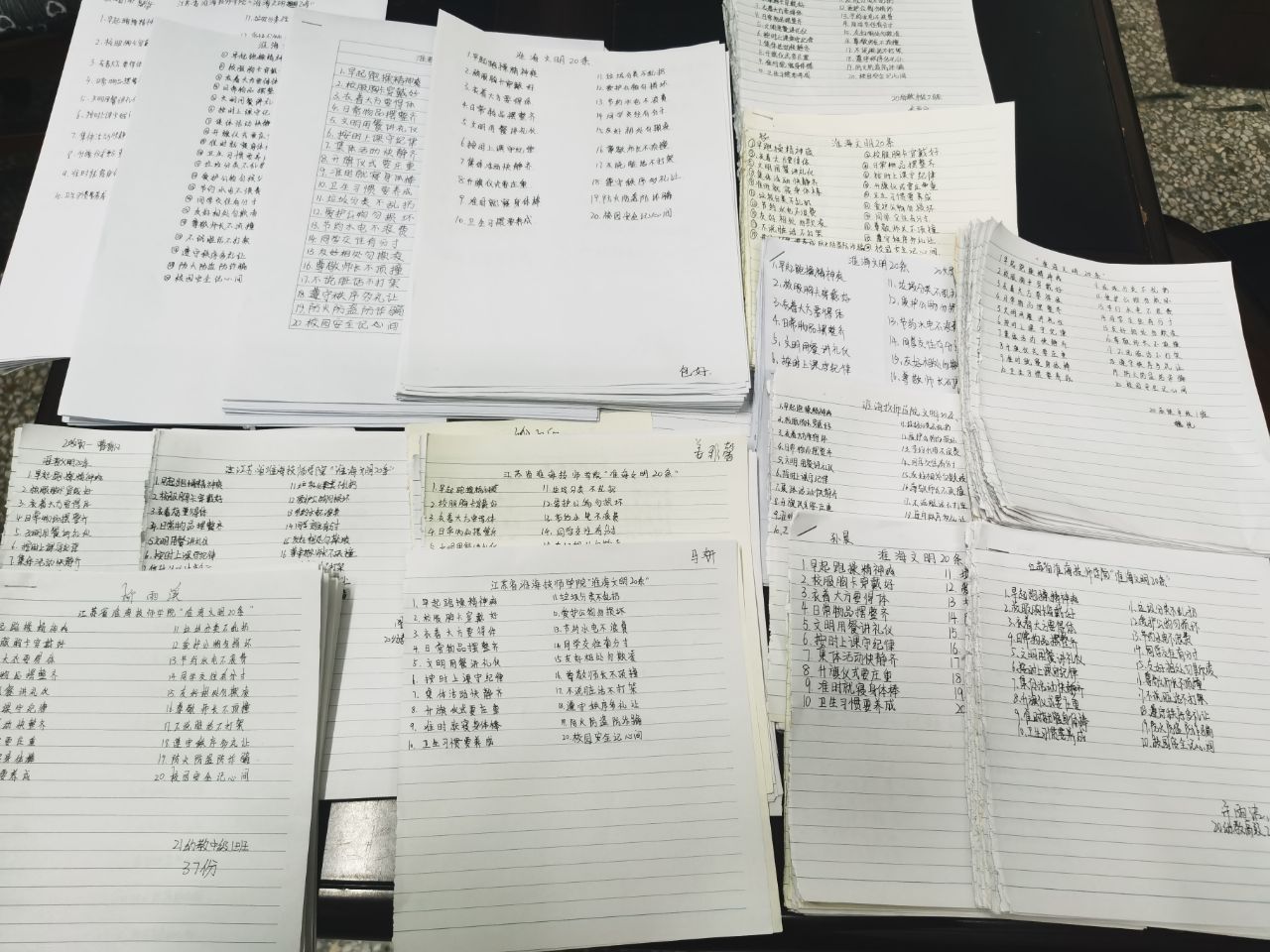 此次活动通过手抄“淮海文明20条”的评比方式,促使学生进一步加深对“淮海文明20条”的认识,深刻领会其丰富内涵,能够从文明礼仪、学习态度、生活方式、安全意识、行为习惯等方面严格要求,养成良好行为习惯,提升综合素养;提高安全防范意识,学会保护自己;刻苦学习知识技能,成就精彩人生。