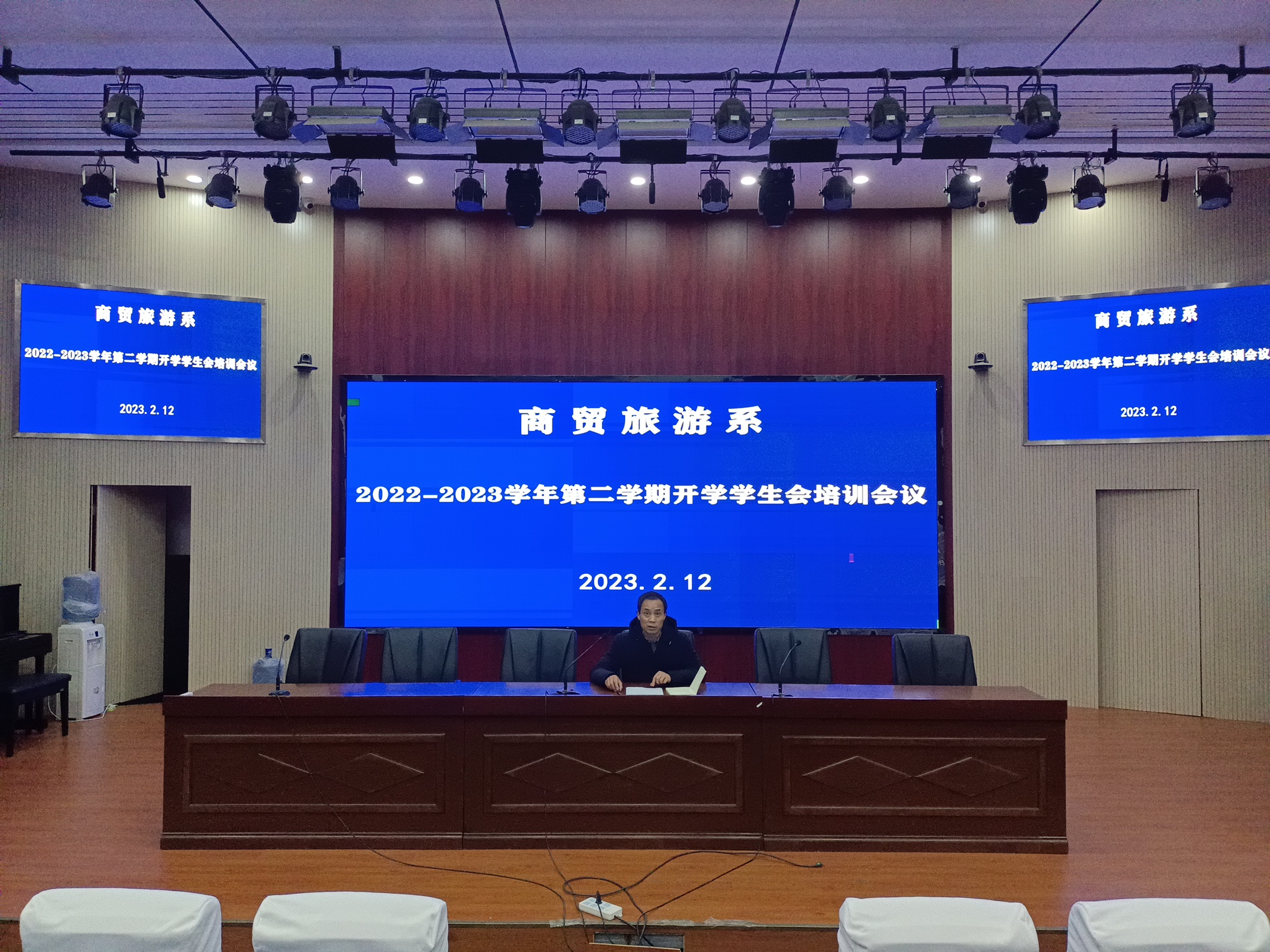 为进一步提高学生会工作人员的综合素质,强化学生自主管理,2月12日晚,商贸旅游系在蓝海剧场召开学生会工作人员全员培训会。