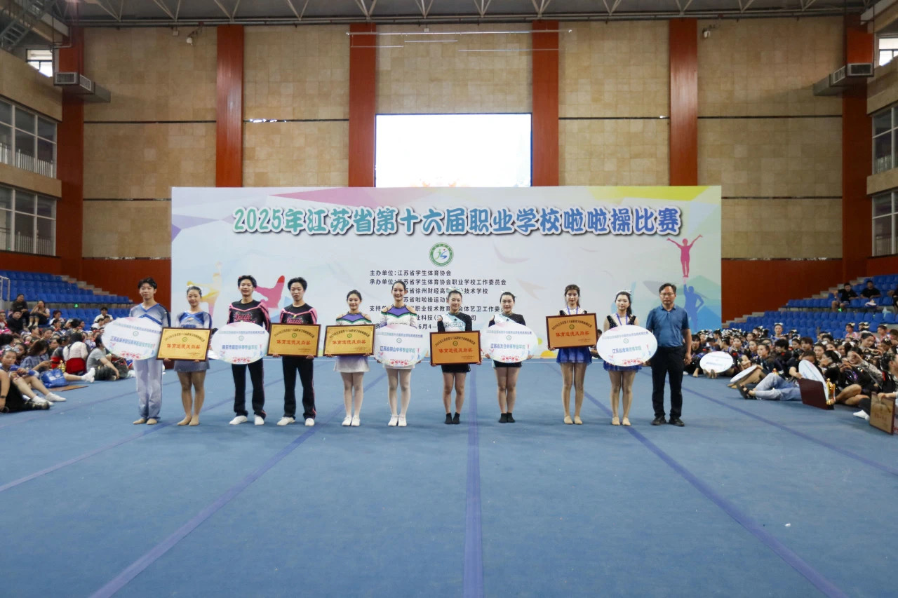 近日,江苏省第十六届职业学校啦啦操比赛圆满落下帷幕,我院商贸旅游系啦啦操队在此次比赛中表现出色,载誉而归。由崔婷婷老师带领的17名学生组成的队伍,凭借精彩的发挥和出色的团队协作,在众多参赛队伍中脱颖而出,荣获高职组爵士啦啦操项目冠军、高职组团体二等奖以及体育道德风尚奖。